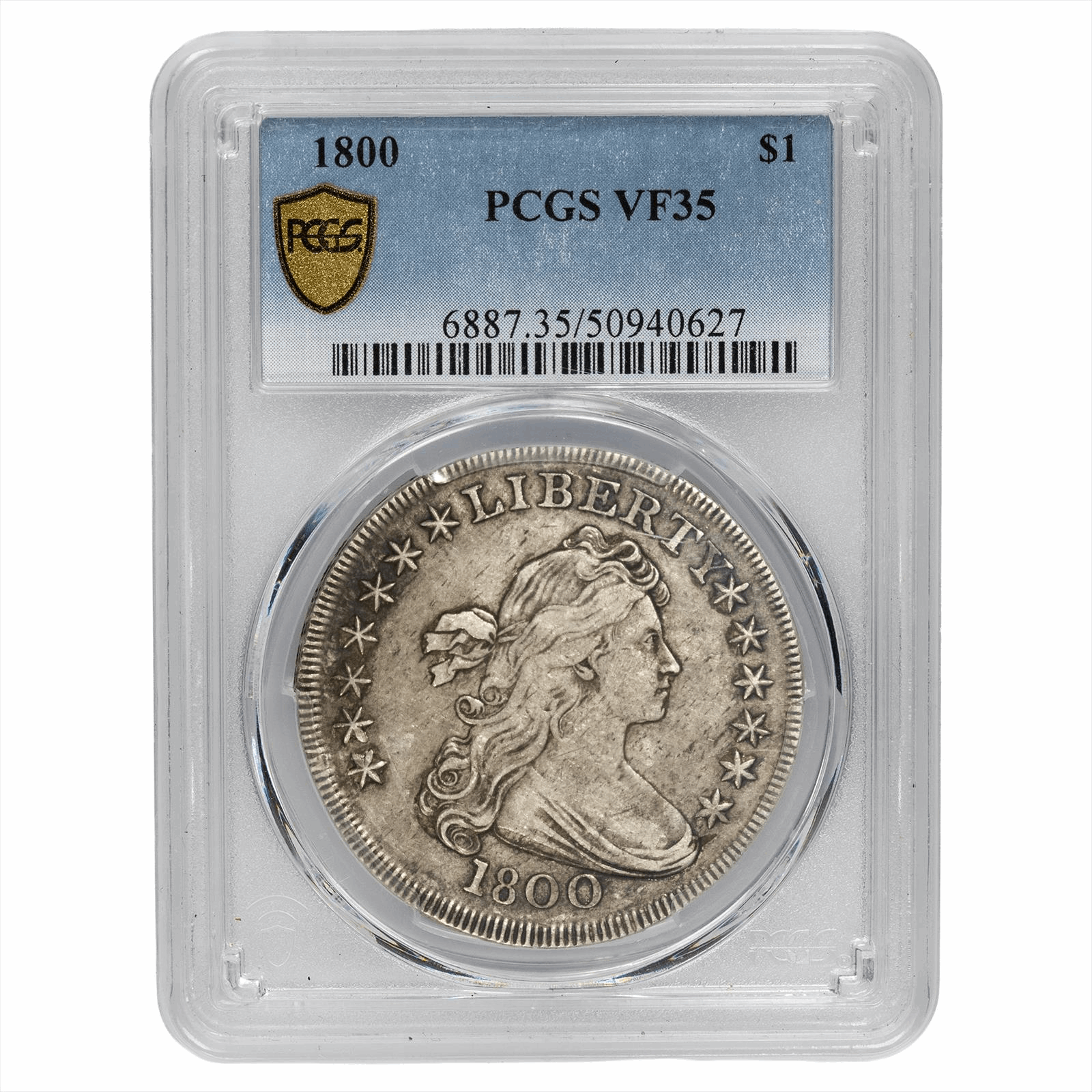 Draped Bust (1795-1804) - Heraldic Eagle (1798-1804) The Draped Bust Dollar featured two reverse designs. The early small eagle was not a popular motif and Robert Scot replaced his earlier design with the bolder Heraldic Eagle. These were produced by the early mint for circulation until 1803 when silver dollar production ceased until 1836. In 1804, less than ten coins were originally struck with just a few restrike examples known to exist. This famed 1804 Dollar is perhaps the most prodigious U.S. numismatic rarity. As such, the other Heraldic Eagle dollar examples are one of the most sought after issues for dollar enthusiasts and type collectors alike.