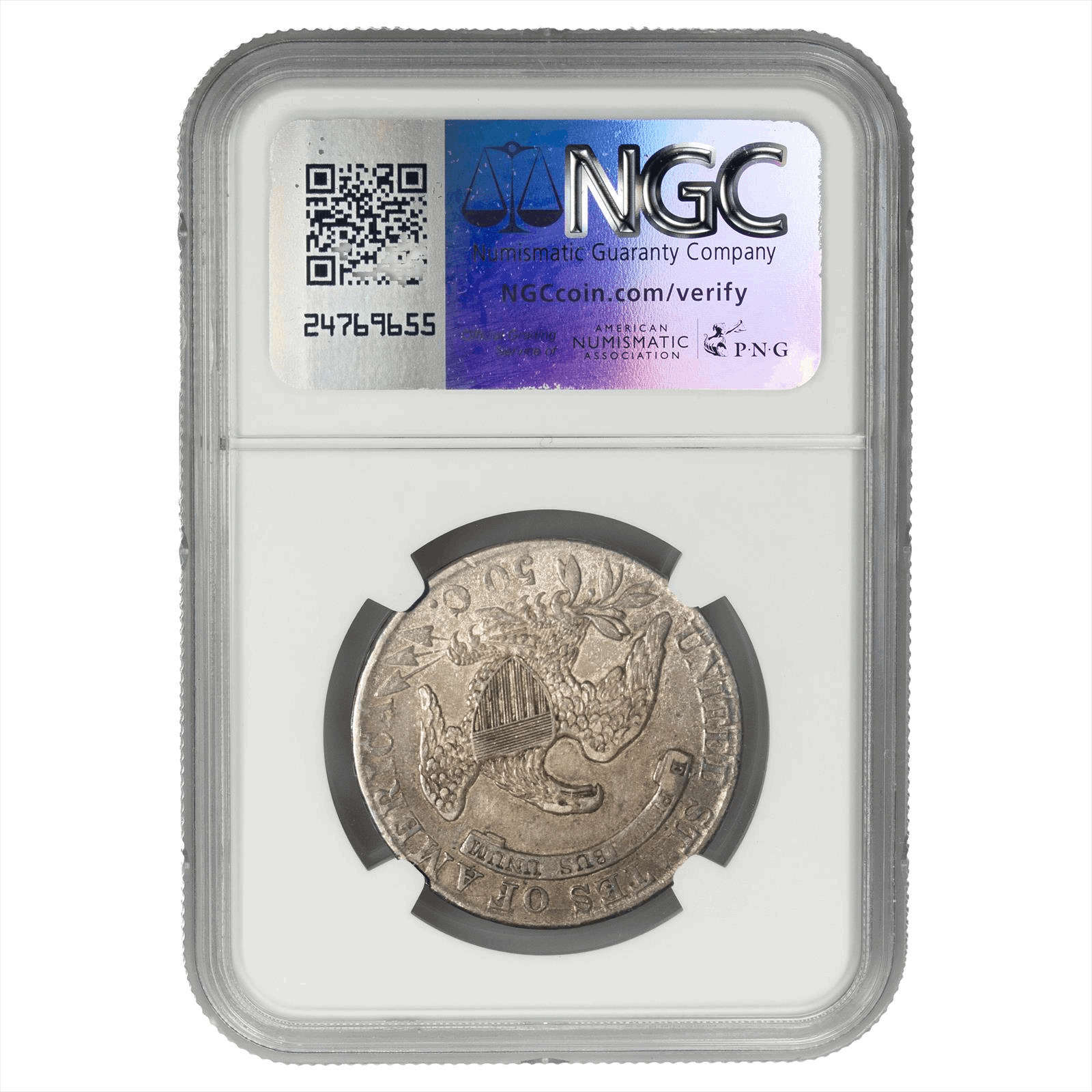 Product Details: 1831 50C coin in XF 45 condition, encapsulated by the Numismatic Guaranty Company. Features a portrait of Liberty adorned with a cap, surrounded by stars, showcasing exquisite detail and historical significance. The reverse displays an eagle holding a shield and an olive branch, emphasizing American pride and heritage. This coin is a prized addition for collectors, recognized for its craftsmanship and age. The NGC certification guarantees authenticity and quality, making it a valuable piece for any numismatic collection. Perfect for both seasoned collectors and those new to coin collecting.