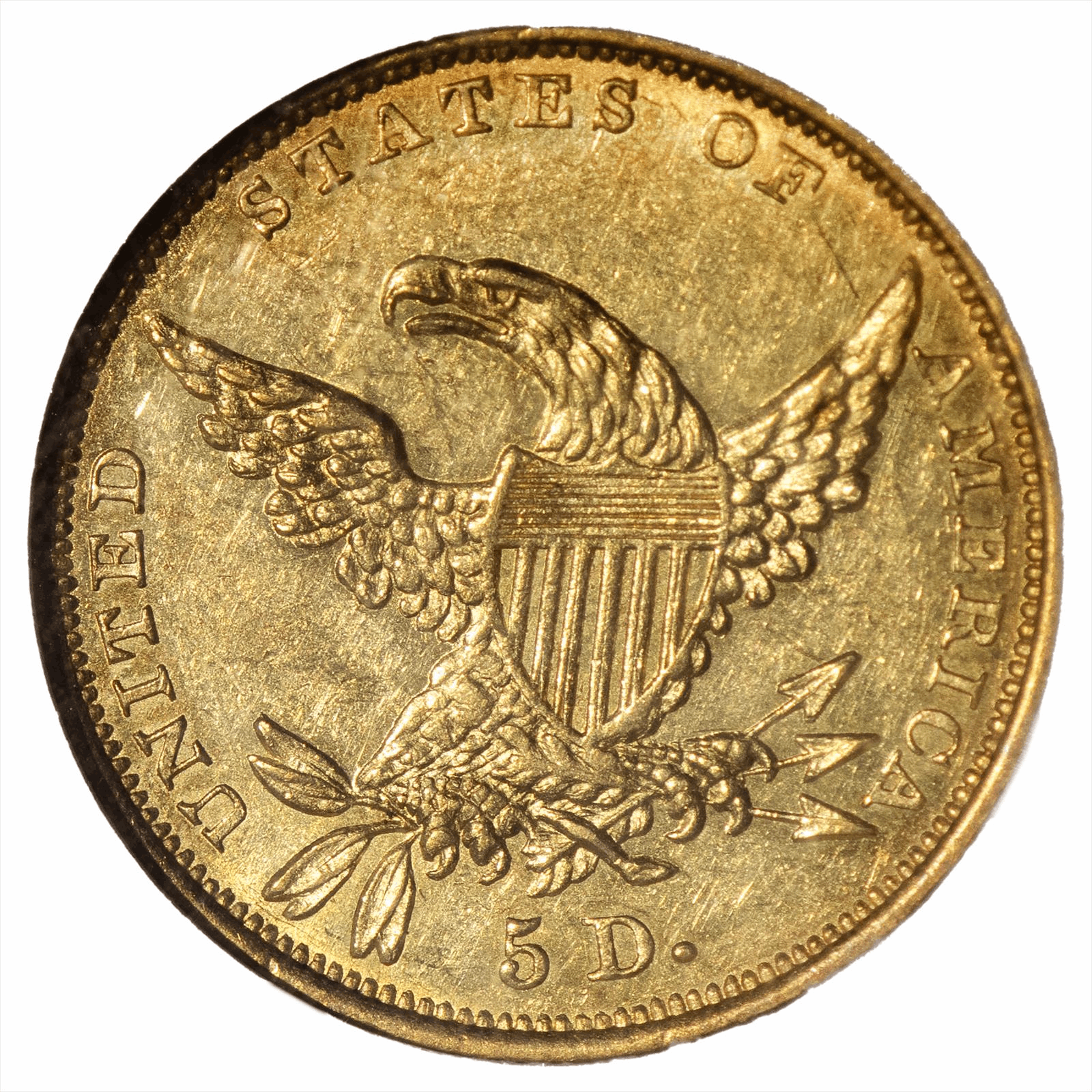 1834 Plain 4 Classic Head Gold Half Eagle $5 NGC MS 61