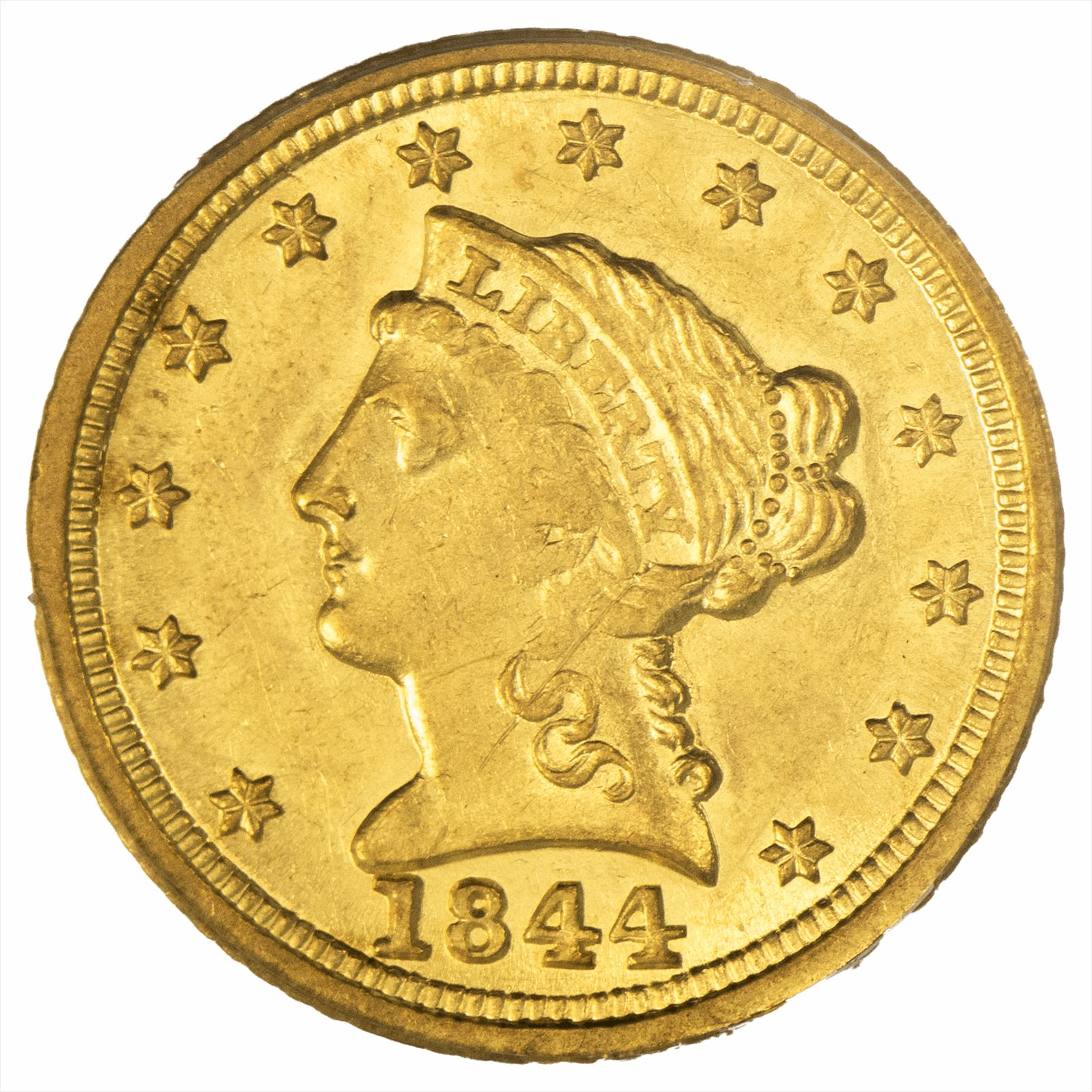 1844-D Liberty Head Gold Quarter Eagle $2.50, PCGS AU 55 - Excellent AU Type Coin - OGH