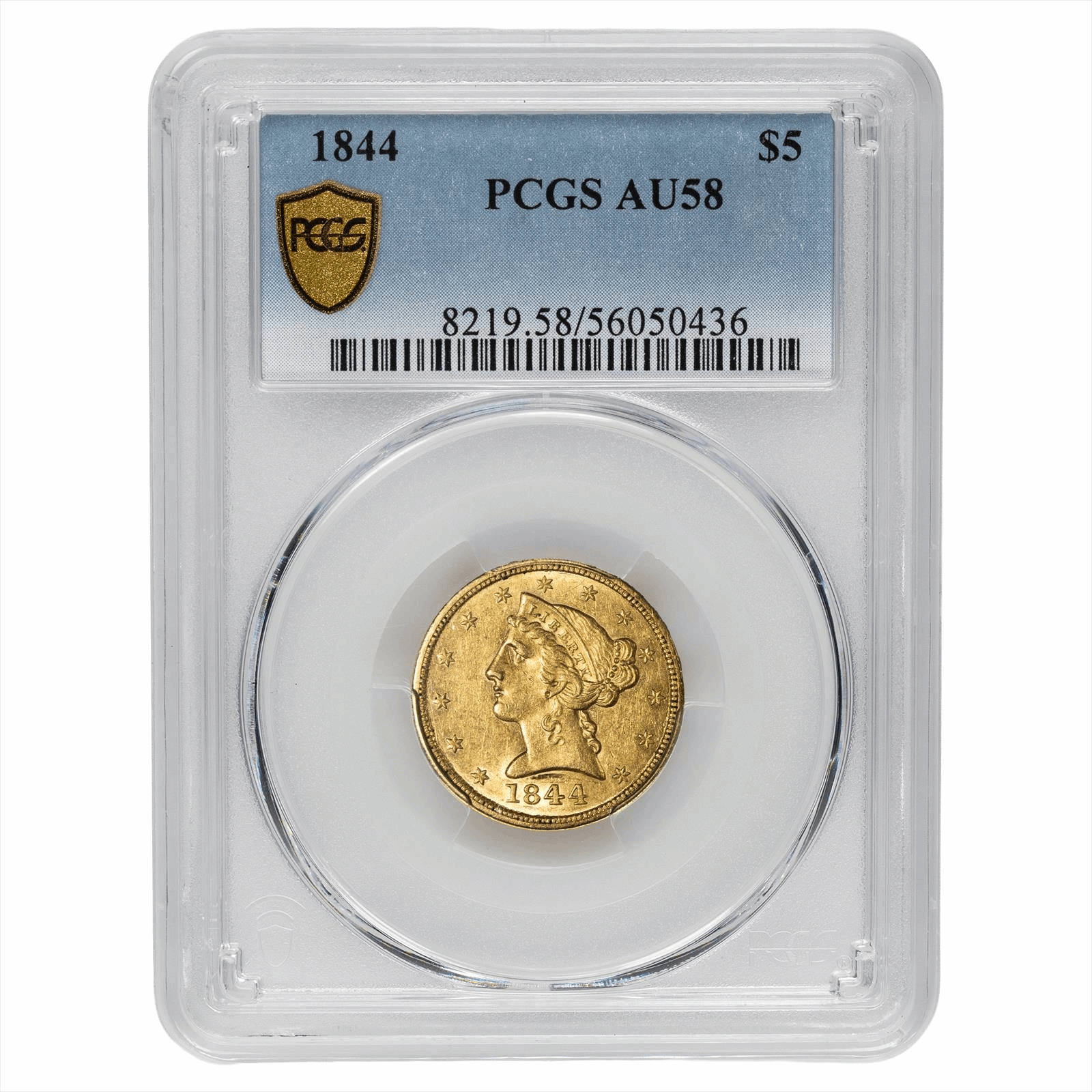 This is a PCGS graded coin. You will receive the coin pictured. You are purchasing an 1844 Liberty Head Half Eagle graded PCGS AU 58. This is an excellent coin to add to your collection.
