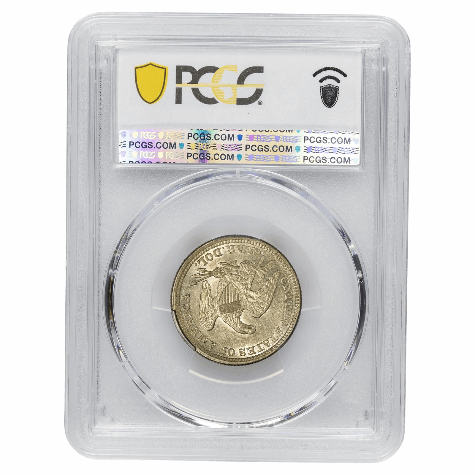 Product Details: 1861 Seated Liberty Quarter in AU 55 condition, graded by PCGS. This coin features the iconic Seated Liberty design, with Lady Liberty holding a shield and a Liberty pole, symbolizing strength and freedom. The obverse displays the year '1861,' while the reverse showcases a majestic eagle, representing the United States. Encased in a protective holder, this collectible piece reflects both historical significance and impressive craftsmanship. Ideal for numismatic enthusiasts or as a standout addition to any collection.