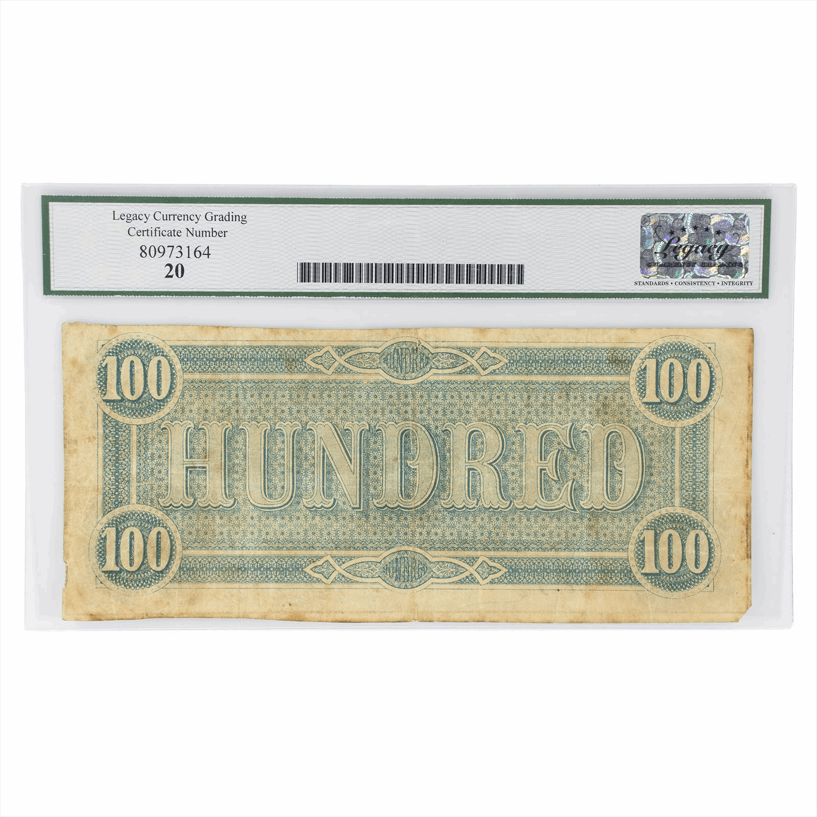 1864 T65 Confederate States of America Note $100 Legacy VF 20