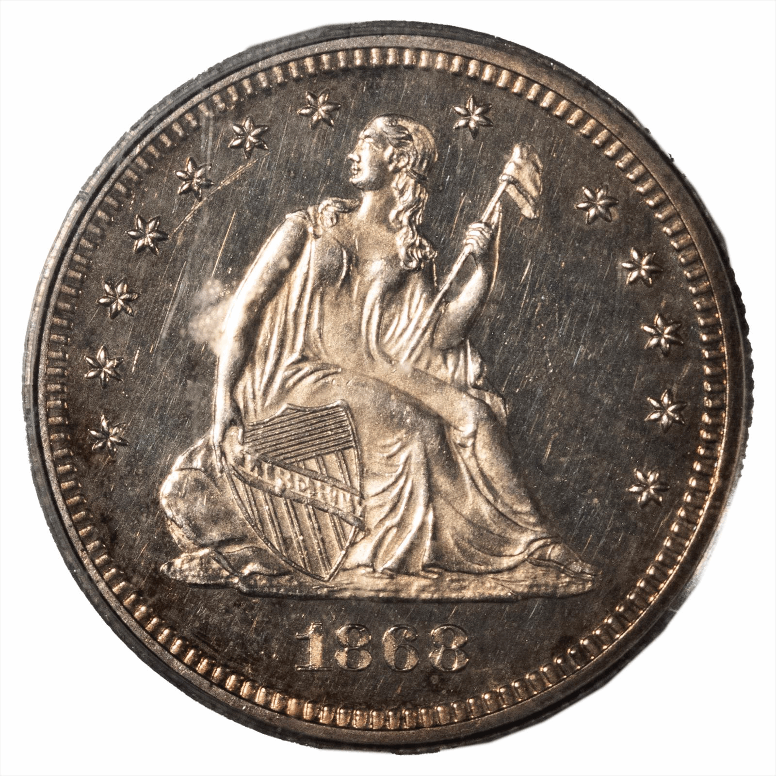 This is a PCGS graded coin. You will receive the coin pictured. You are purchasing an 1868 Seated Liberty Quarter graded PCGS PR 64 CAM. This is an excellent coin to add to your collection.