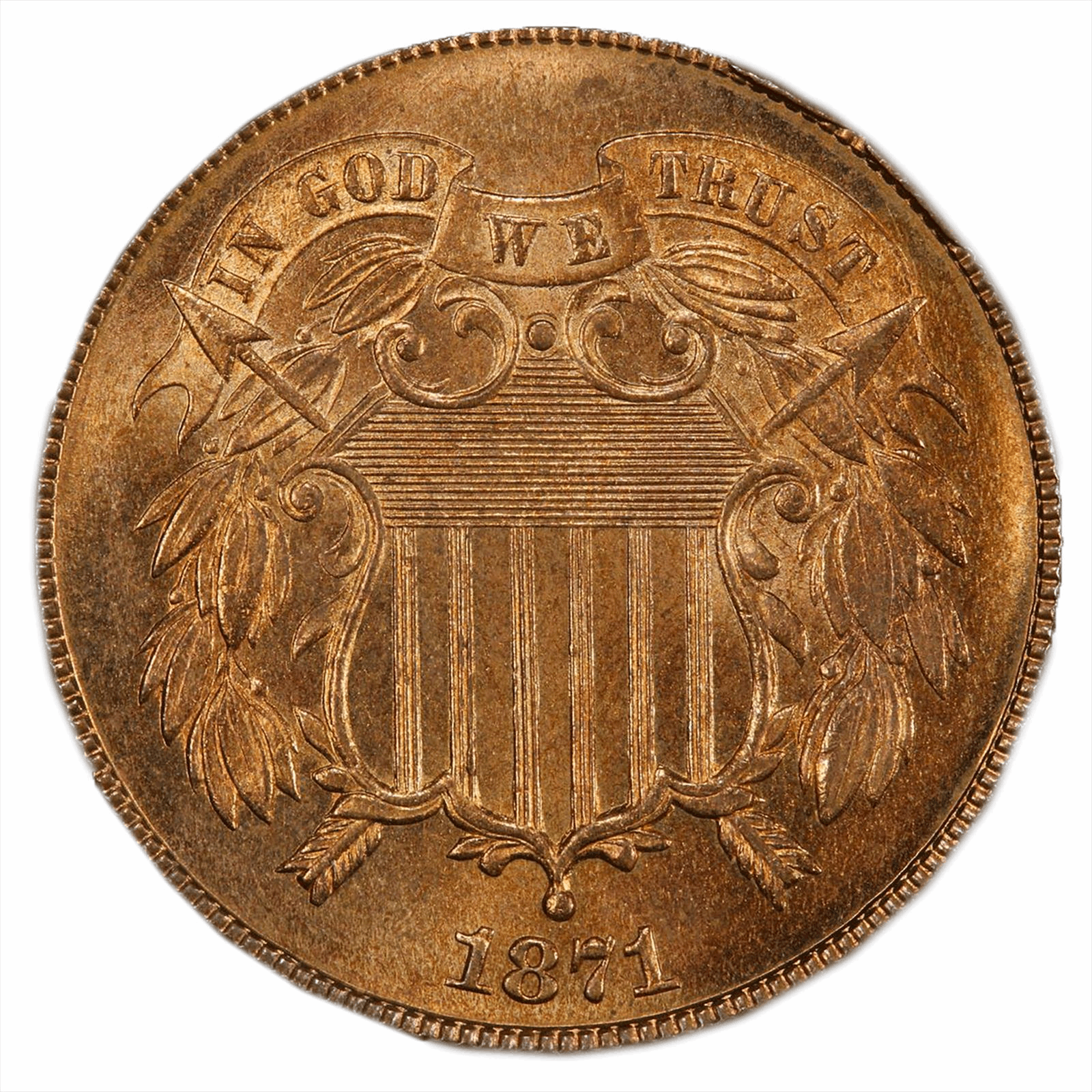 This is a PCGS graded coin. You will receive the coin pictured. You are purchasing an 1871 Shield Two Cent graded PCGS MS 66 RD CAC.