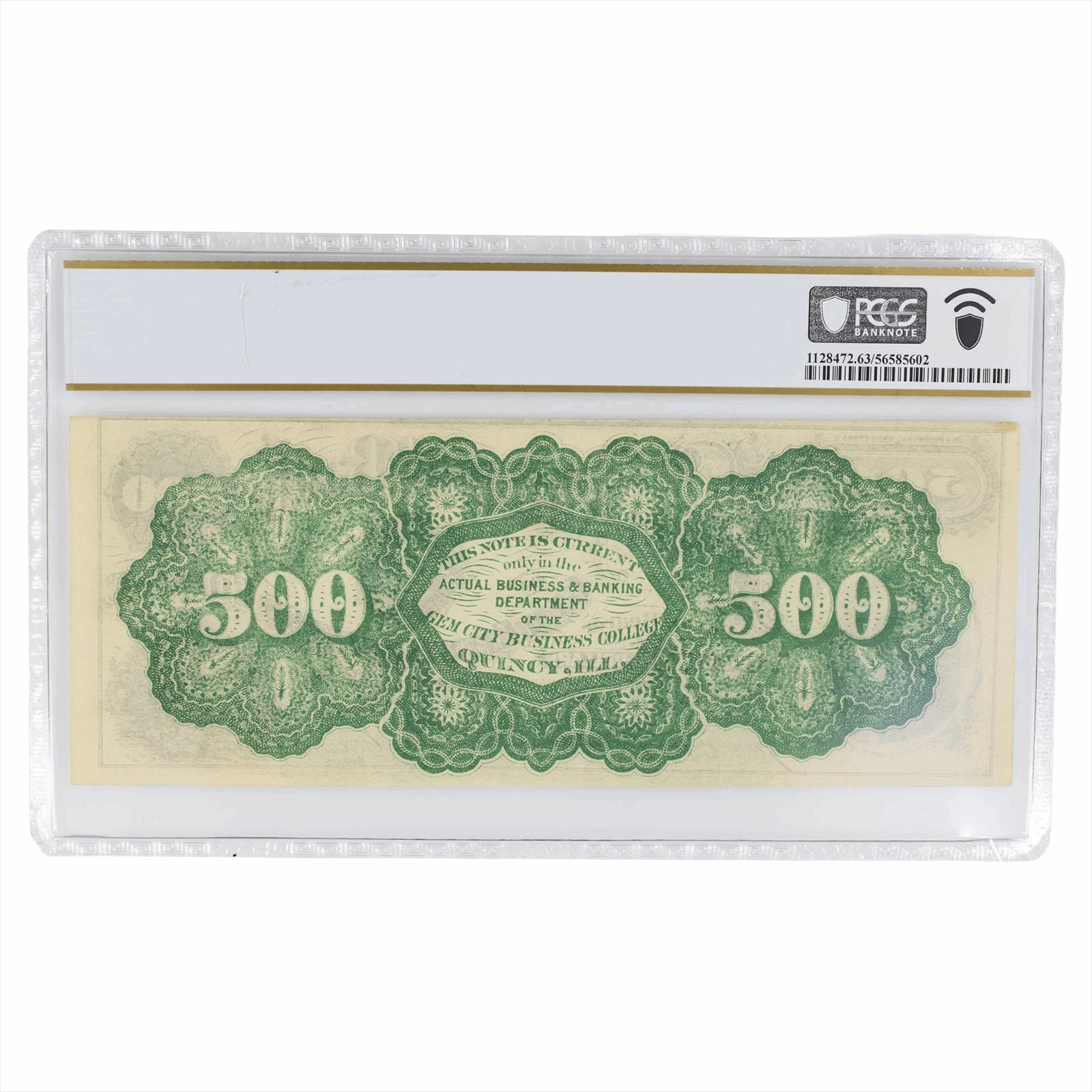 1873 $500 Gem City Business College Currency Quincy, IL PCGS Choice UNC 63