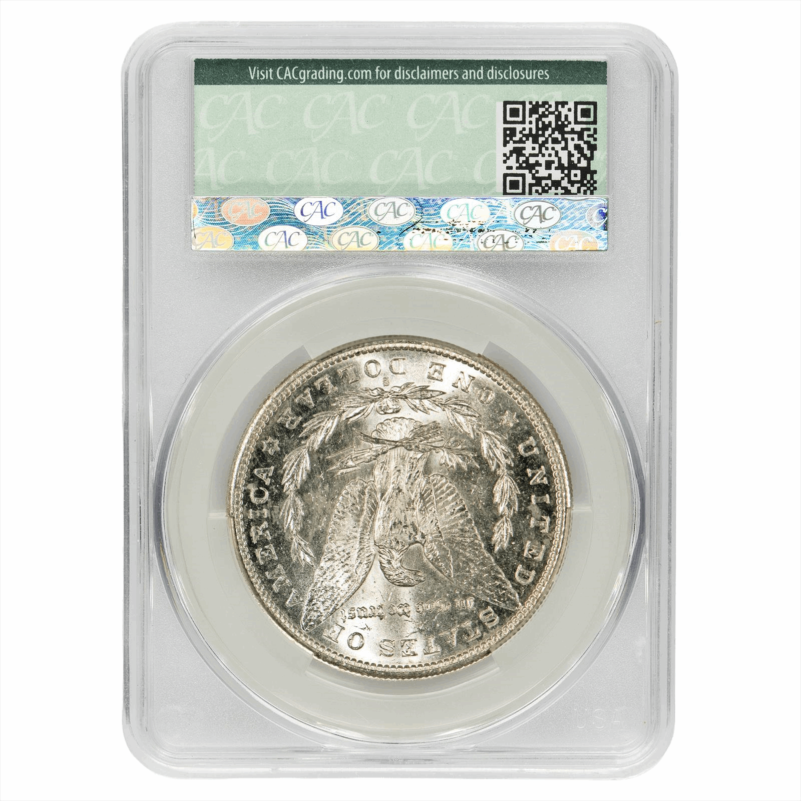 This is a CACG graded coin. You will receive the coin pictured. You are purchasing an 1889-S Morgan Silver Dollar graded CACG MS 63 CAC. This is an excellent coin to add to your collection.