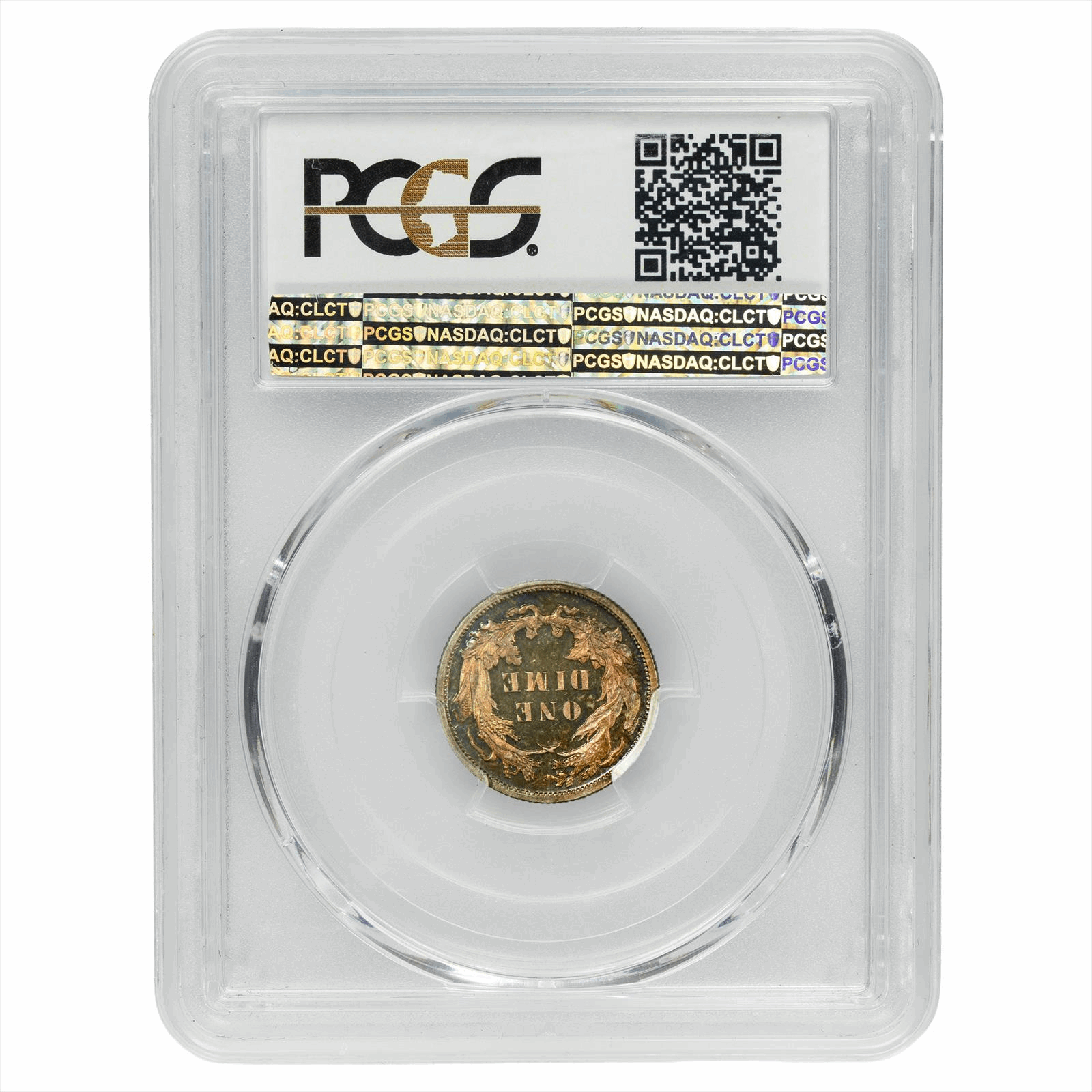 Product Details: Introducing a remarkable 1891 Barber Dime, expertly graded at PR 66 by PCGS, ensuring its status as a highly sought-after collectible. Encased in a protective holder, this piece showcases the iconic seated liberty design, capturing the elegance and history of American coinage. The obverse features a graceful depiction of Lady Liberty, radiating sophistication, complemented by the inscription 'UNITED STATES OF AMERICA' and the year '1891.' The meticulous details and vibrant mint luster enhance its visual appeal, making it a stunning addition to any numismatic collection. The reverse reflects exceptional craftsmanship, prominently displaying the denomination 'ONE DIME.' Each element, from the intricate wreath to the clear inscriptions, demonstrates the artistry and quality of this vintage coin. Perfect for collectors or investors seeking to enrich their portfolios with a distinguished piece of American history.