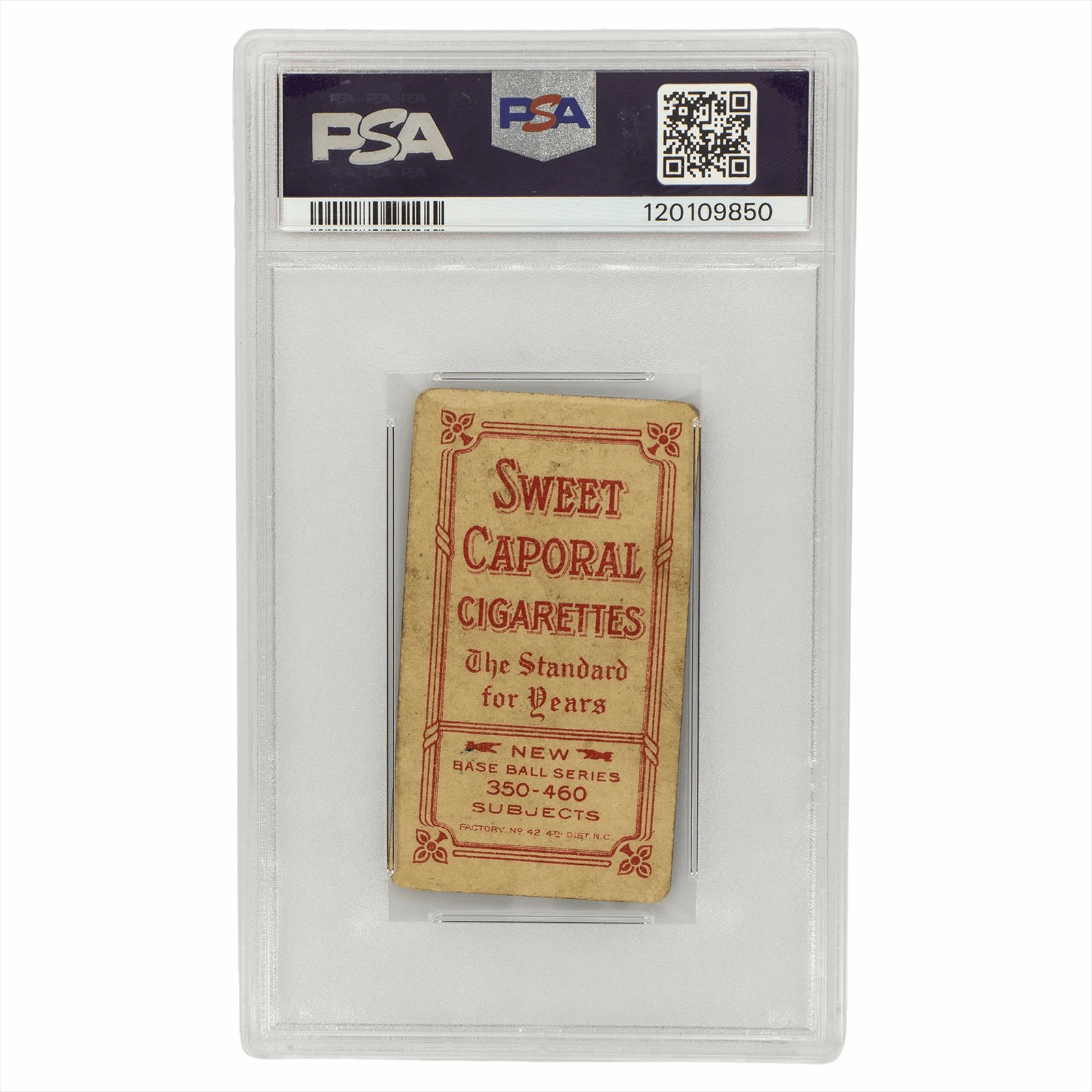 Product Details: The T206 S. Caporal Josh Devore baseball card from the 1909-1911 series is a significant collectible piece for enthusiasts and historians alike. Hailing from the renowned 'Sweet Caporal' series, this card features a striking image of Josh Devore in a batting stance, showcasing intricate colors and detail that reflects the artistry of early 20th-century baseball cards. Graded a 2 by PSA, this card is classified as 'Good,' indicating some wear, which is common for cards of this age. The encapsulation ensures its protection while allowing for display. The reverse side prominently displays 'Sweet Caporal Cigarettes,' signaling its historic nature as a tobacco product advertisement, characteristic of the time when baseball cards were included in cigarette packs. Dimensions align with standard vintage card sizing, making it ideal for both display and collection. This card encapsulates a moment in baseball history and represents a part of the sport’s rich legacy, making it a must-have for serious collectors. A true testament to the game's heritage, the T206 Josh Devore card is not just a collectible but a piece of Americana.