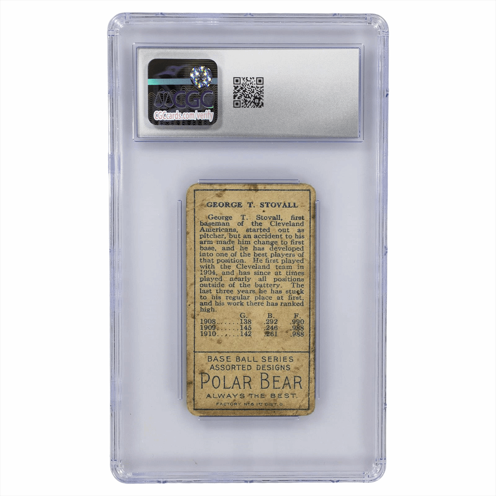 This is a CGC graded card. You will receive the card pictured. You are purchasing a 1911 T205 Gold Border George Stovall CGC Poor 1 card. This is an excellent card to add to your collection.