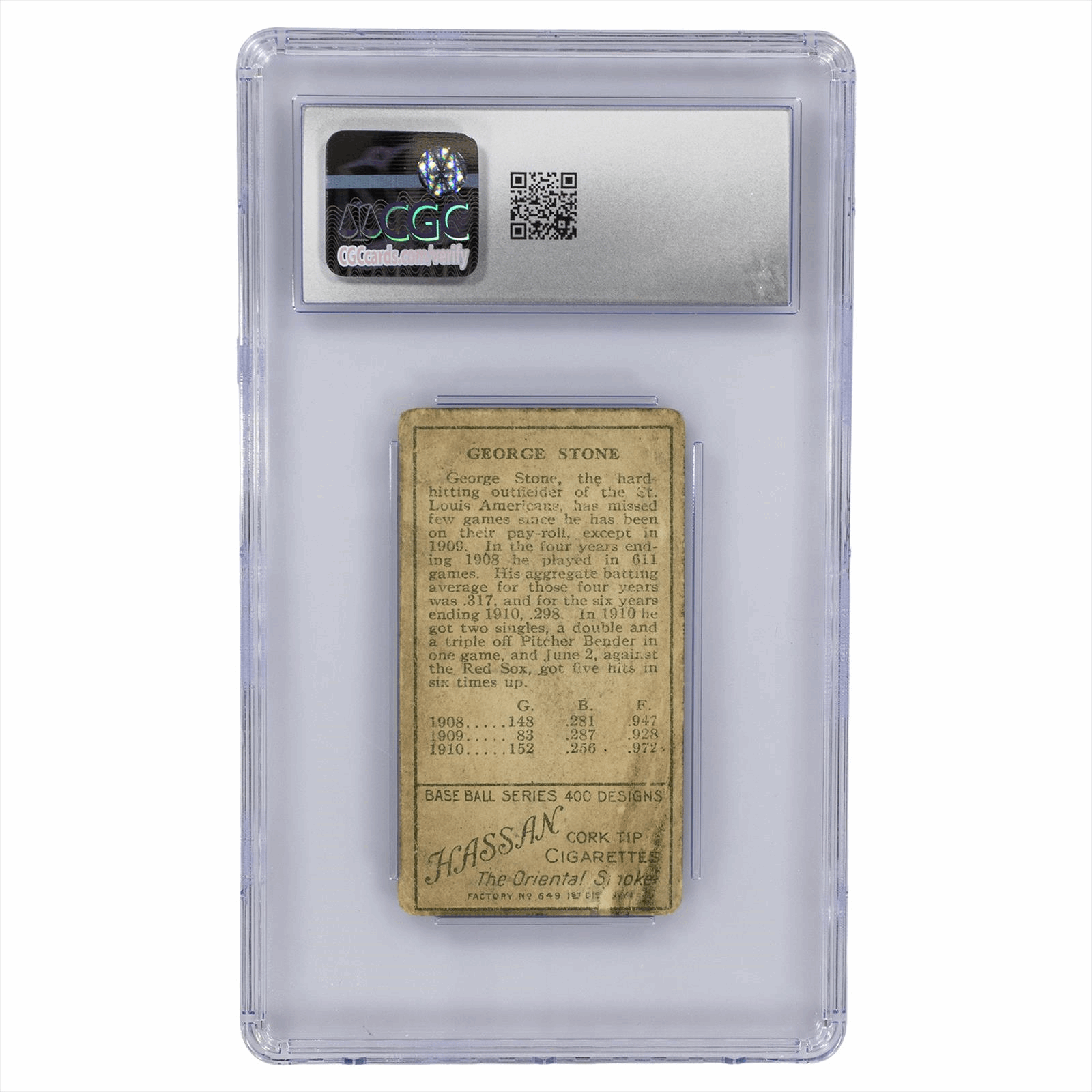 This is a CGC graded card. You will receive the card pictured. You are purchasing a 1911 T250 Gold Border George Stone CGC Fair 1.5 card. This is an excellent card to add to your collection.