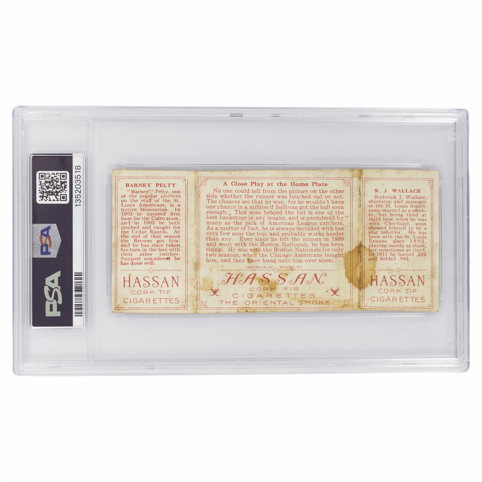 1912 T202 Hassan Triple Folder R.Wallace/B.Pelty A Close Play At Home PSA PR 1 Cert #135203518