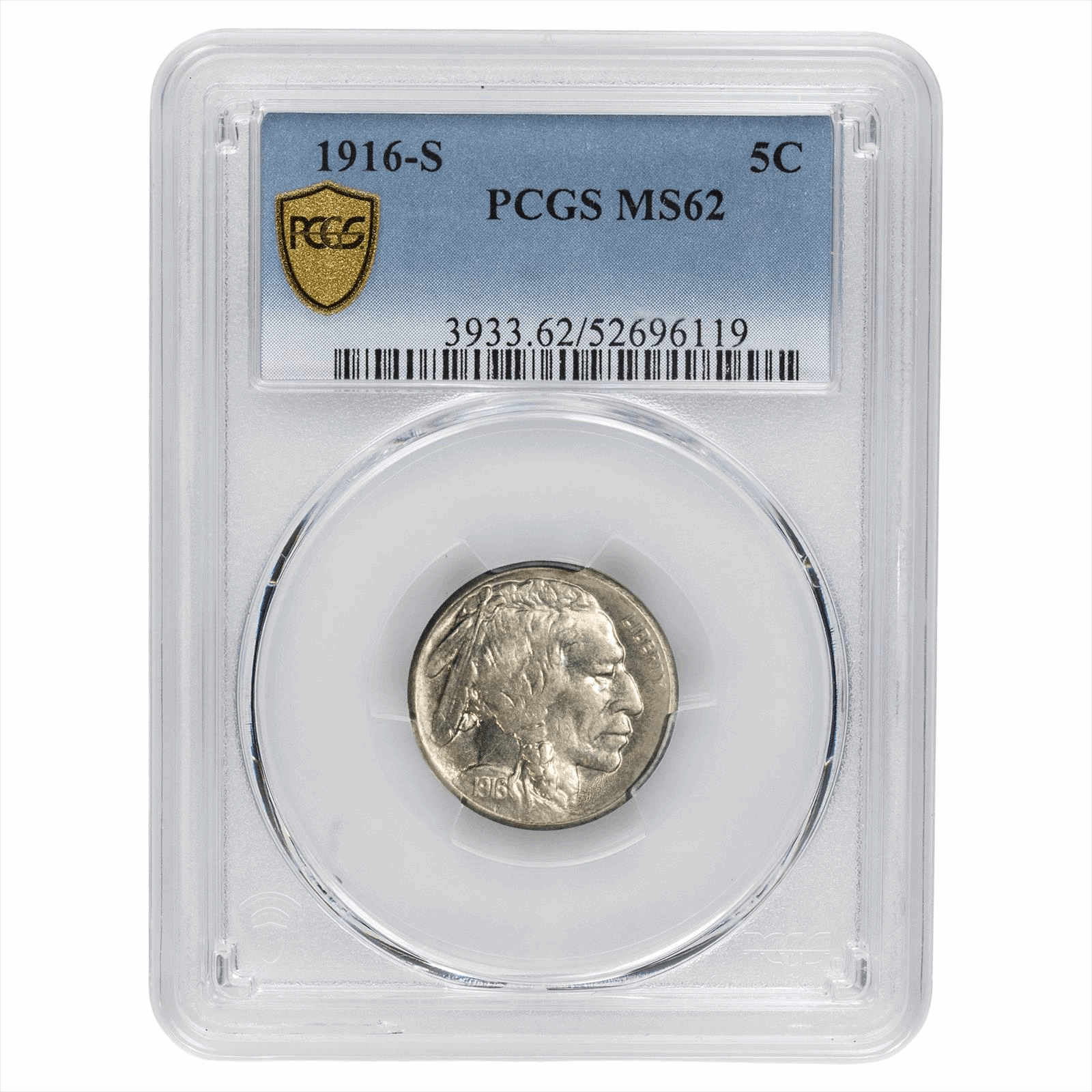 This is a PCGS graded coin. You will receive the coin pictured. You are purchasing a 1916-S Buffalo Nickel graded PCGS MS 62. This is an excellent coin to add to your collection.