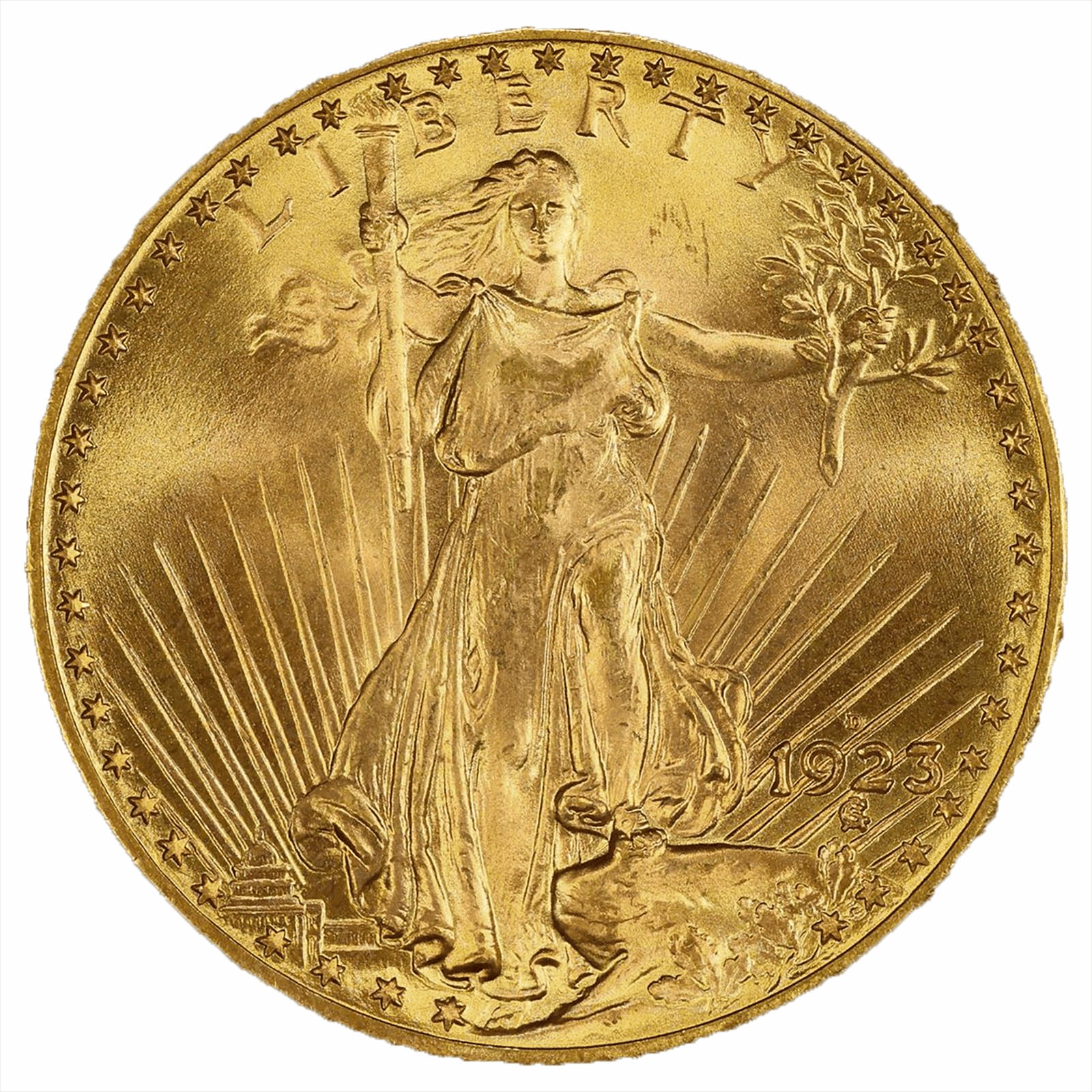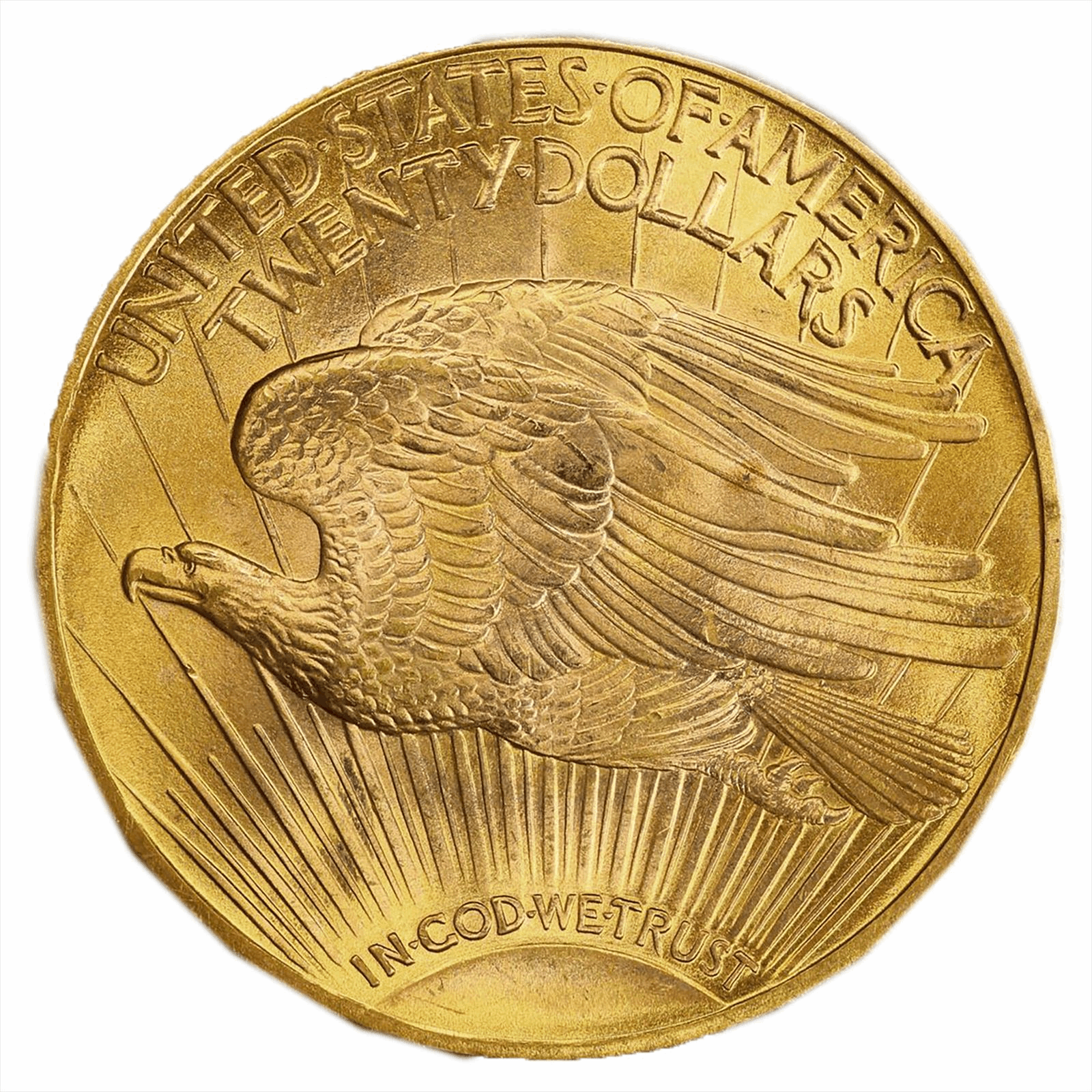 Saint Gaudens $20 Gold Double Eagle (1907-1933) Popular 20th Century coin. Many dates are rare due to the 1933 recall and end of the Gold Standard. Most Examples that survived were either kept by private collectors or stored in banks. They have been a favorite of investors and collectors for decades. The Saint Gaudens $20 Gold Double Eagle was designed by America's foremost Sculpture at the time and was part of an initiative to create a series of coins that could rival European coins at the time. The 1907 high relief design was the closest to the design presented by the sculptor and was later reproduced with a shallower version used till the series was ended in 1933. Early designs had the motto 'IN GOD WE TRUST' removed at the insistence of then President Theodore Roosevelt who felt it was sacrilegious. Ironically this was the opposite of what most Americans at the time felt who demanded it be restored to the coins in 1908 creating with and without motto versions. Add this Coin to your cart today!
