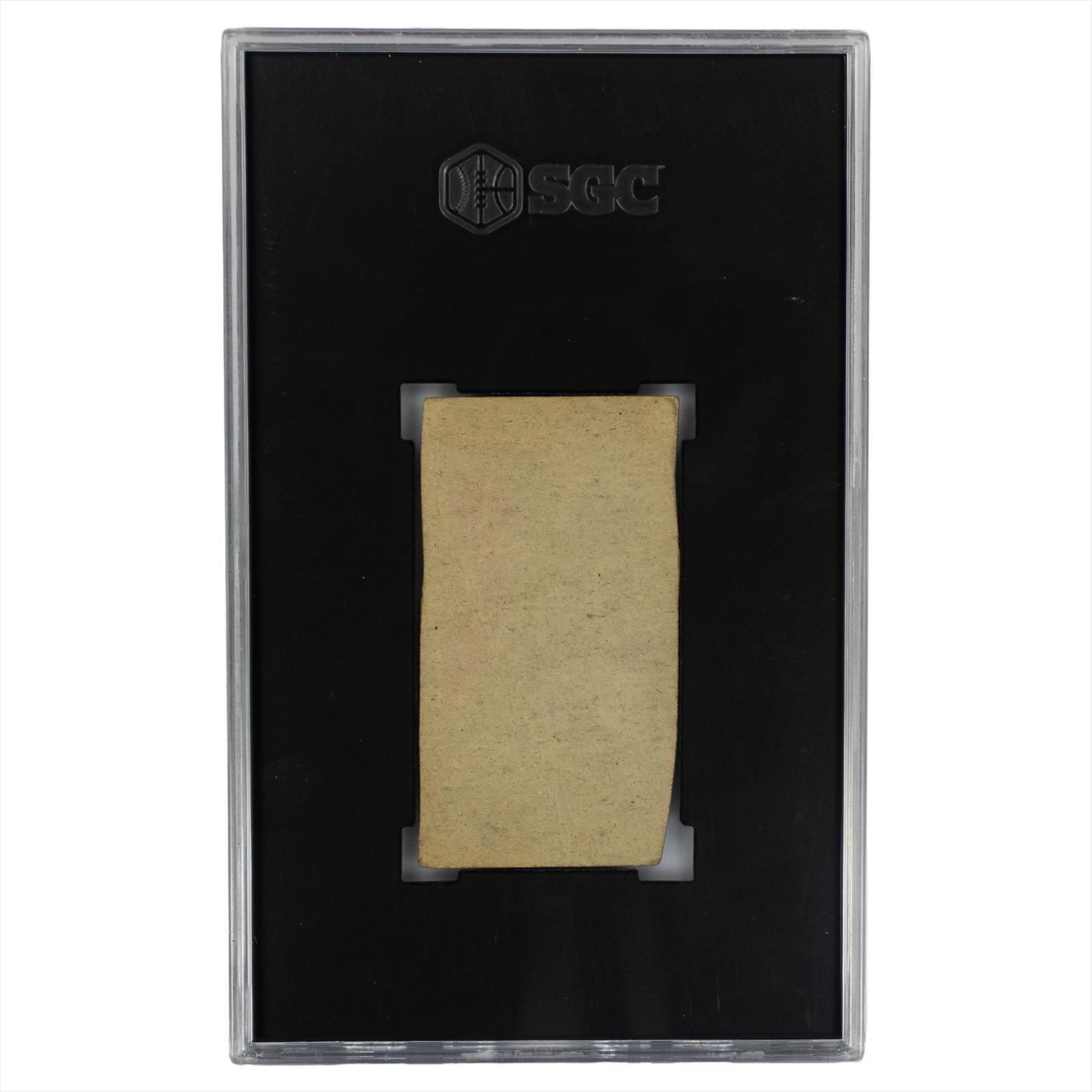 Product Details: 1923 W572 Babe Ruth (Hand Cut) card, exuding historical significance and sports memorabilia charm. Features a classic black and white image of Babe Ruth, showcasing his iconic presence in the game of baseball. The card is hand-cut, adding a unique touch to its authenticity and appeal. Encased in an SGC holder, it is marked 'AUTHENTIC' with a minimum size requirement not met. Back of the card displays a clean, unmarked surface, emphasizing its preservation and quality. A must-have for collectors and fans of baseball history, this card captures the essence of one of the sport's greatest legends. Perfect for display or as an investment piece in any sports collection. Card Features: