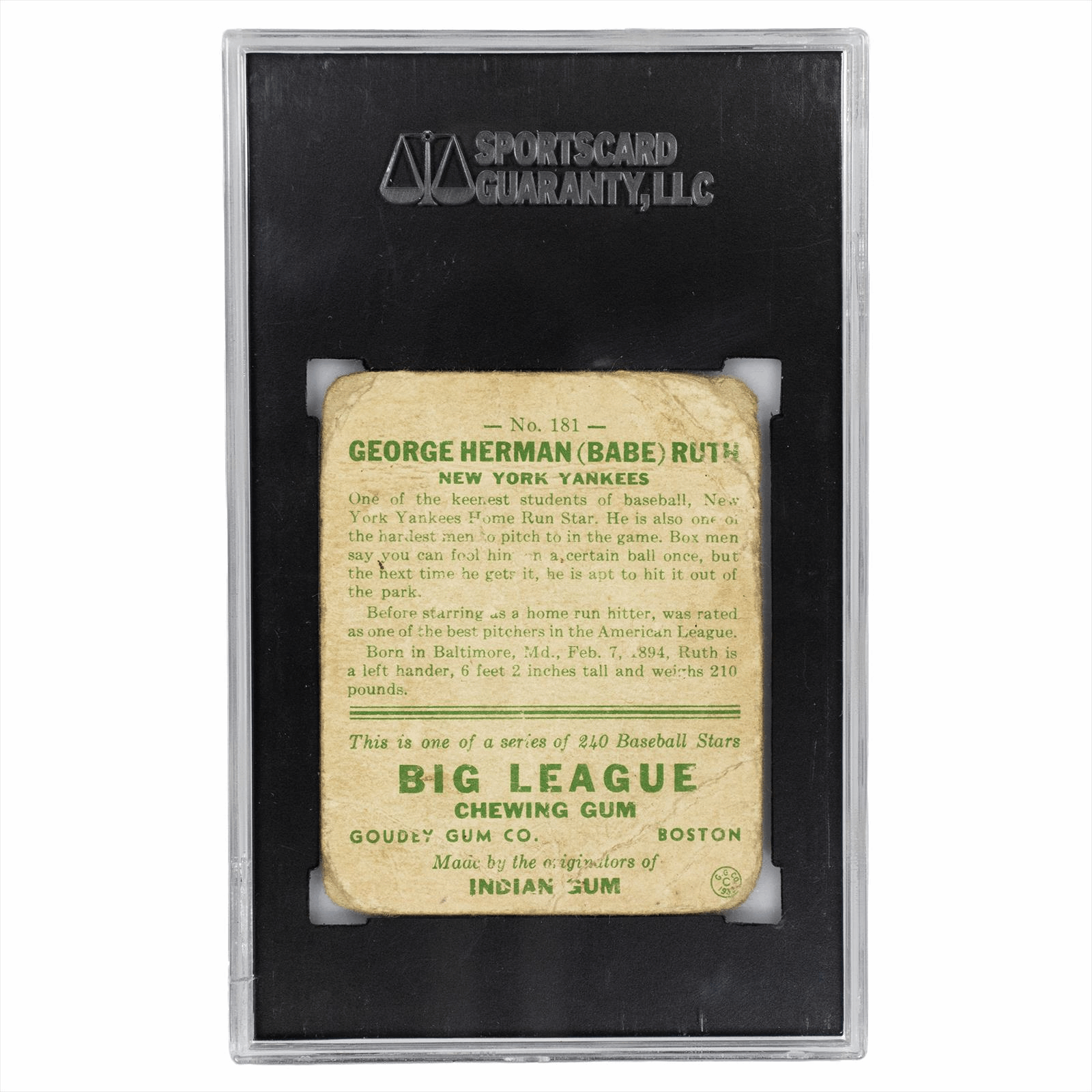 This is a SGC graded card. You will receive the card pictured. You are purchasing a 1933 Goudey Babe Ruth #181 SGC Authentic card. This is an excellent card to add to your collection.