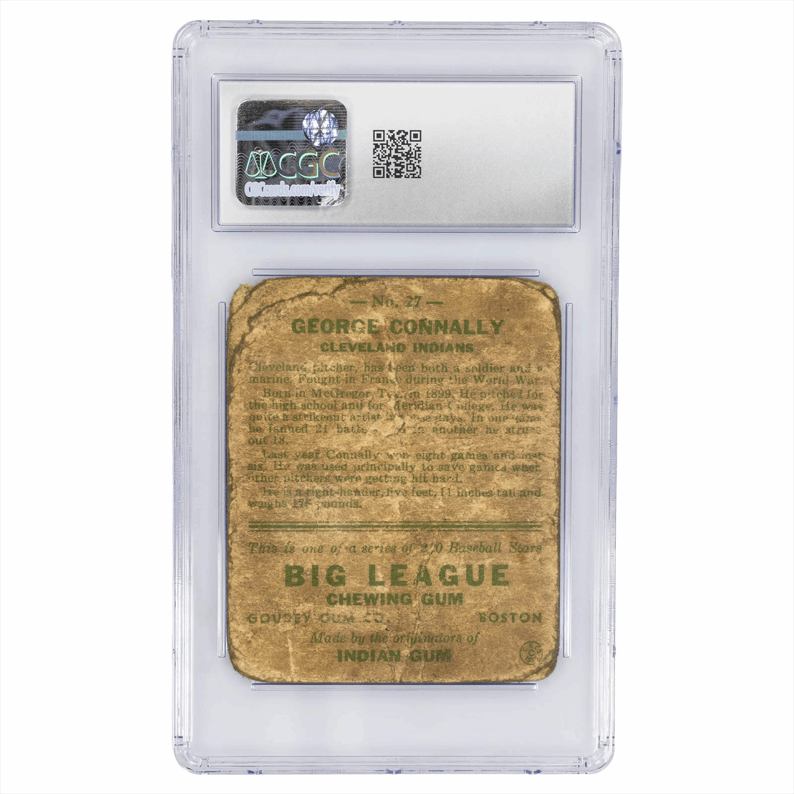 This is a CGC graded card. You will receive the card pictured. You are purchasing a 1933 Goudey George Connally #27 CGC POOR 1 card. This is an excellent card to add to your collection.