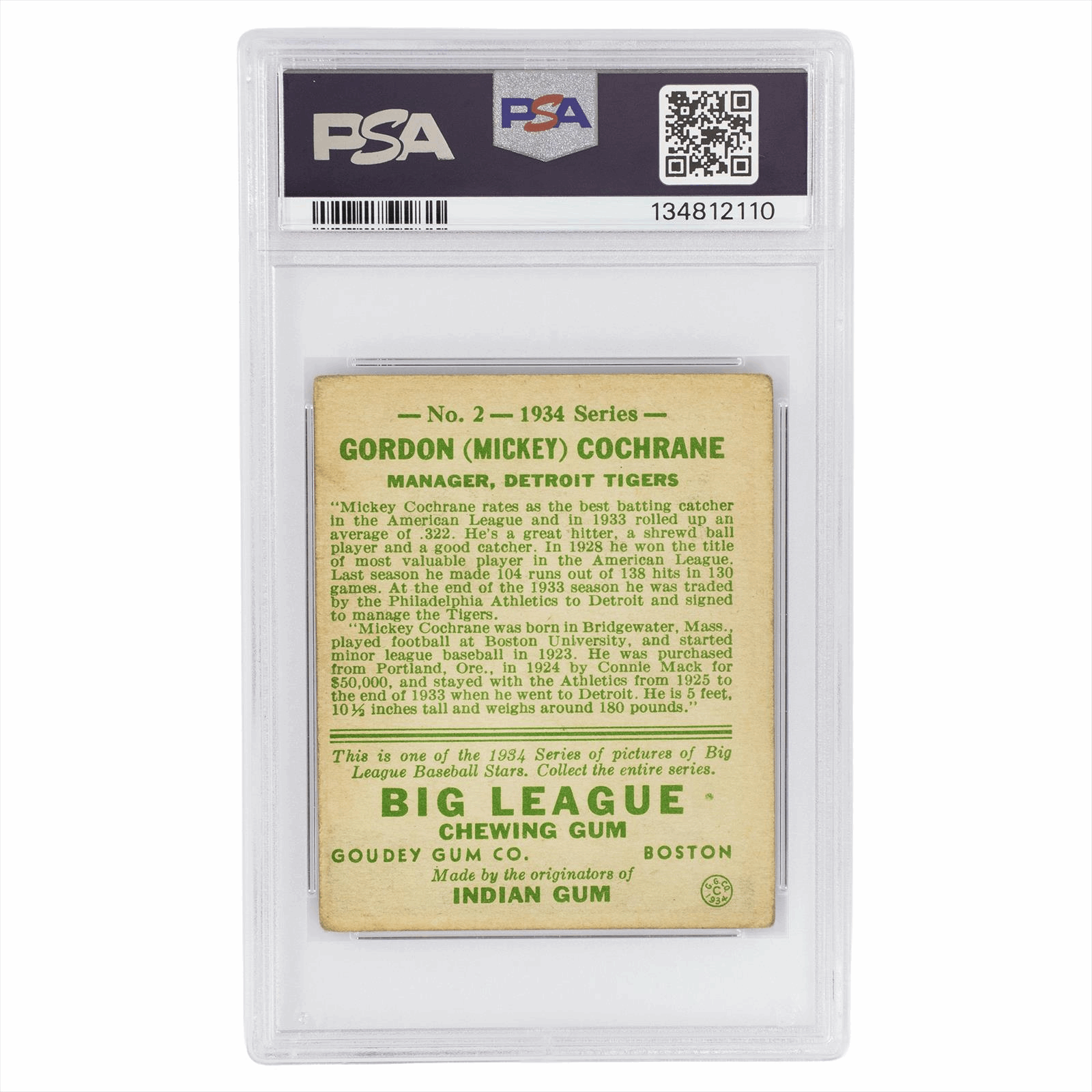 1934 Goudey Mickey Cochrane #2 PSA GOOD 2 Cert #134812110