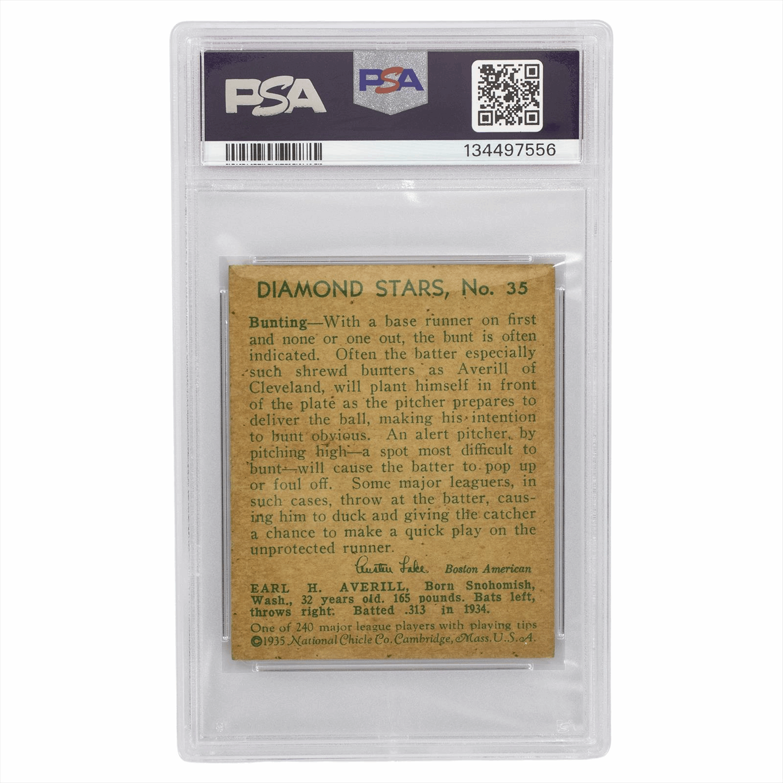 This is a PSA graded card. You will receive the card pictured. You are purchasing a 1935 Diamond Stars Earle Averill #35 PSA VG 3 card. This is an excellent card to add to your collection.
