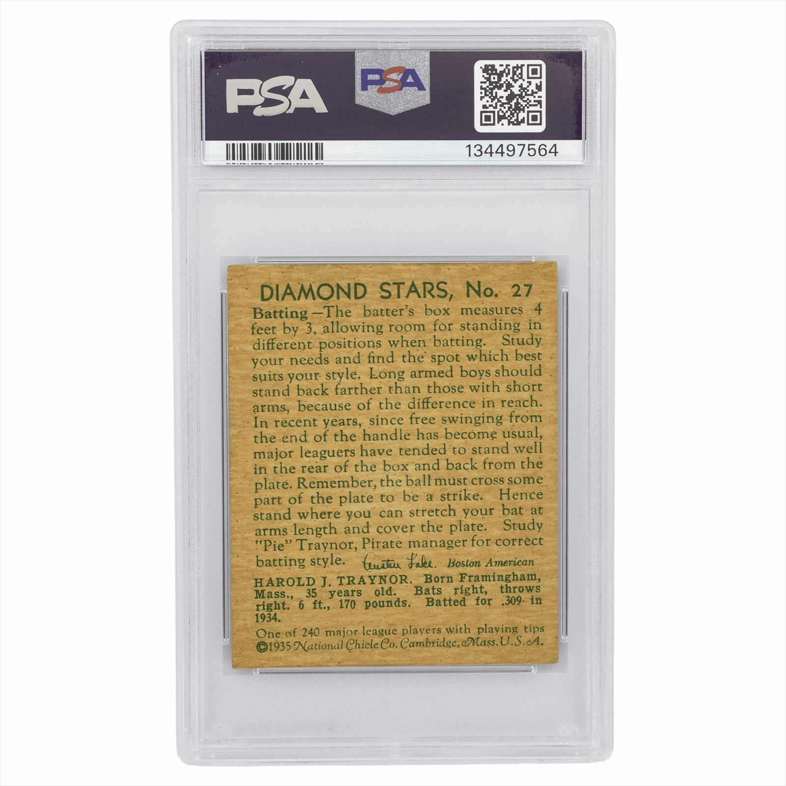 This is a PSA graded card. You will receive the card pictured. You are purchasing a 1935 Diamond Stars Pie Traynor #27 PSA VG-EX 4 card. This is an excellent card to add to your collection.