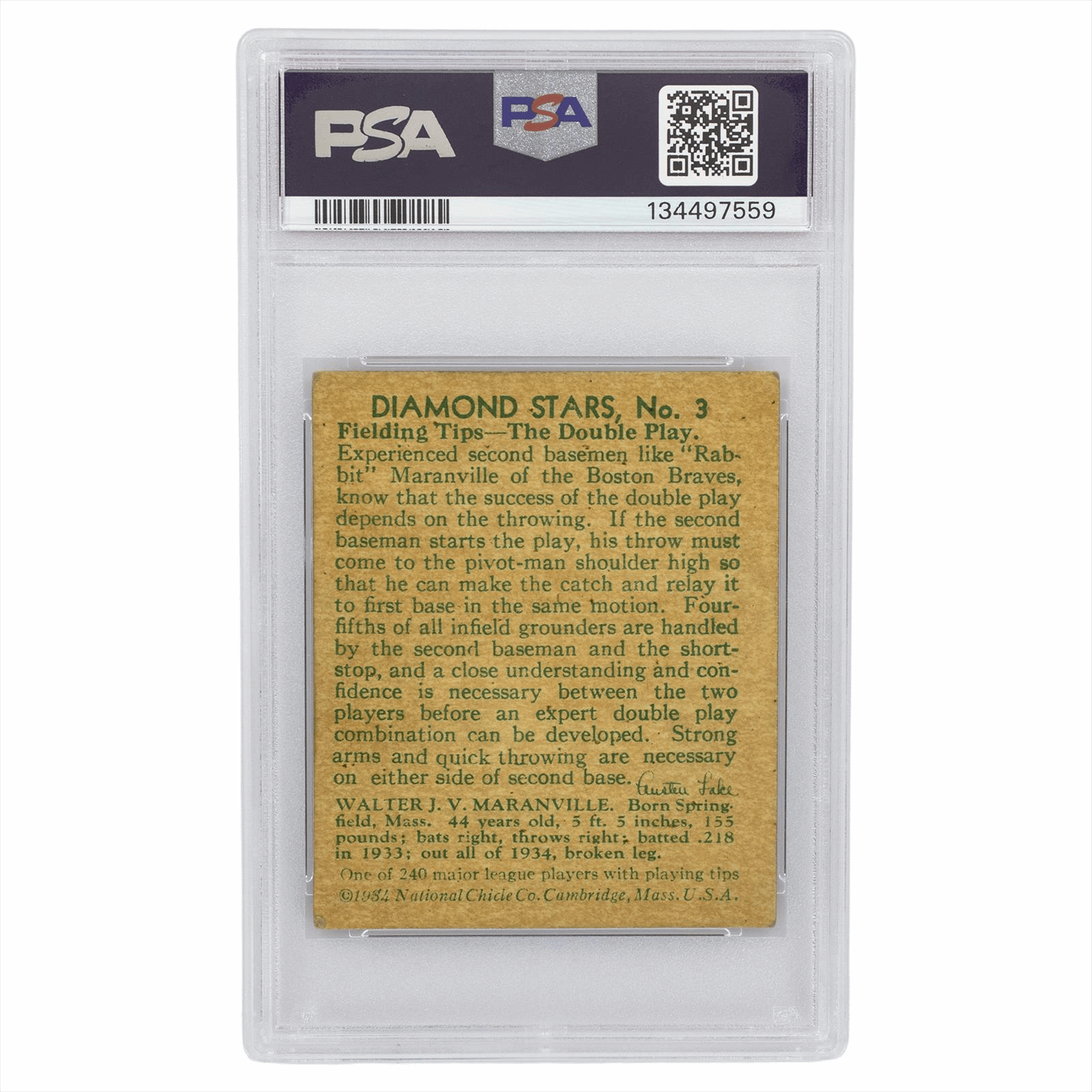 This is a PSA graded card. You will receive the card pictured. You are purchasing a 1935 Diamond Stars Rabbit Maranville #3 PSA VG 3 card. This is an excellent card to add to your collection.