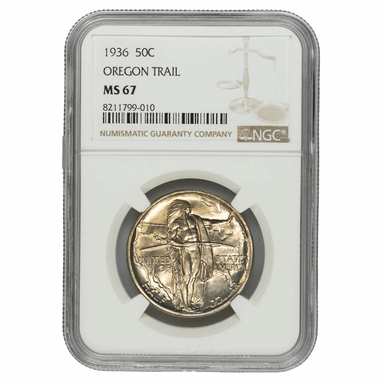 This is an NGC graded coin. You will receive the coin pictured. You are purchasing a 1936 Oregon Trail Commemorative Half Dollar graded NGC MS 67. This is an excellent coin to add to your collection.