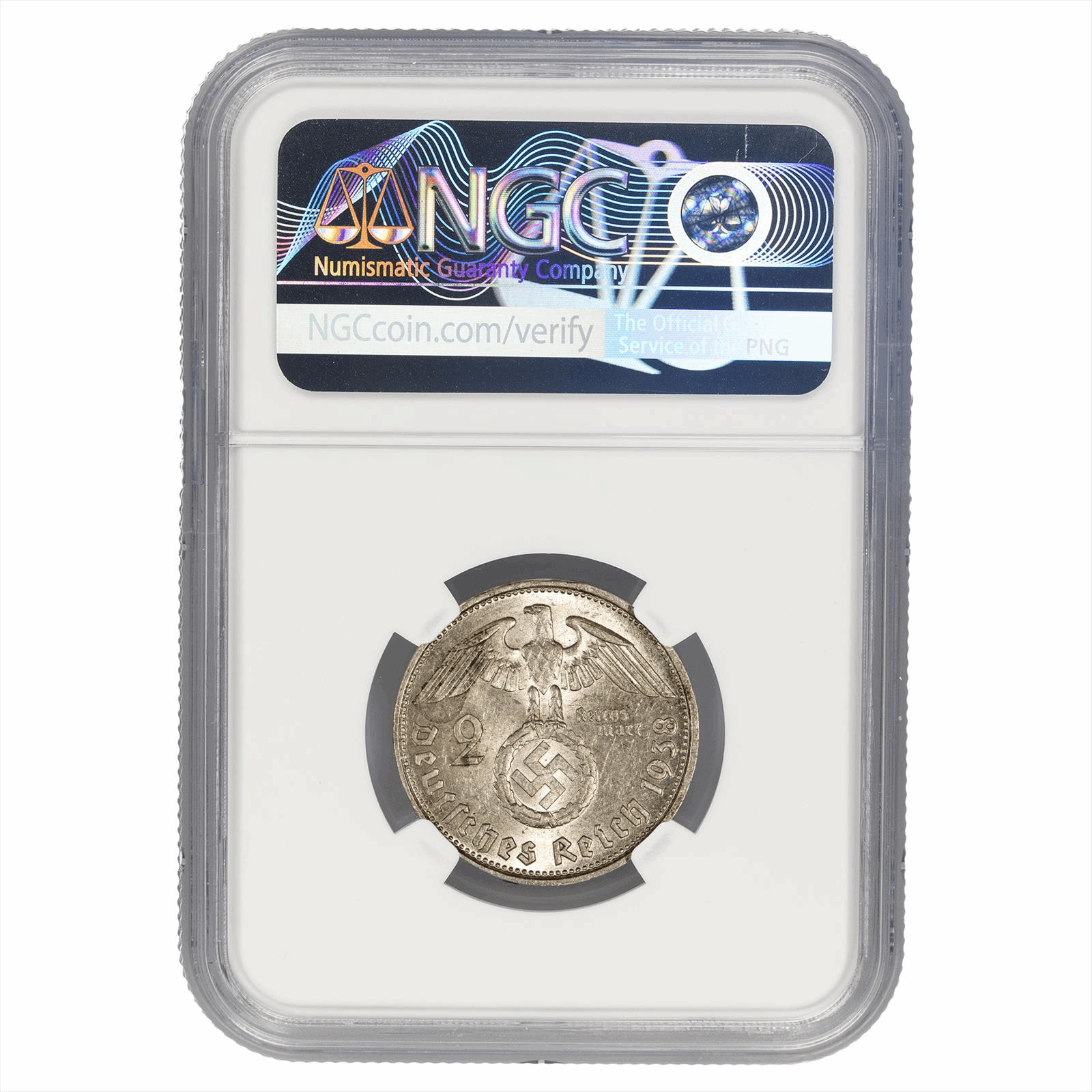 This is an NGC graded coin. You will receive the coin pictured. You are purchasing a 1938B Germany 2 Reichsmark graded NGC MS 61. This is an excellent coin to add to your collection.