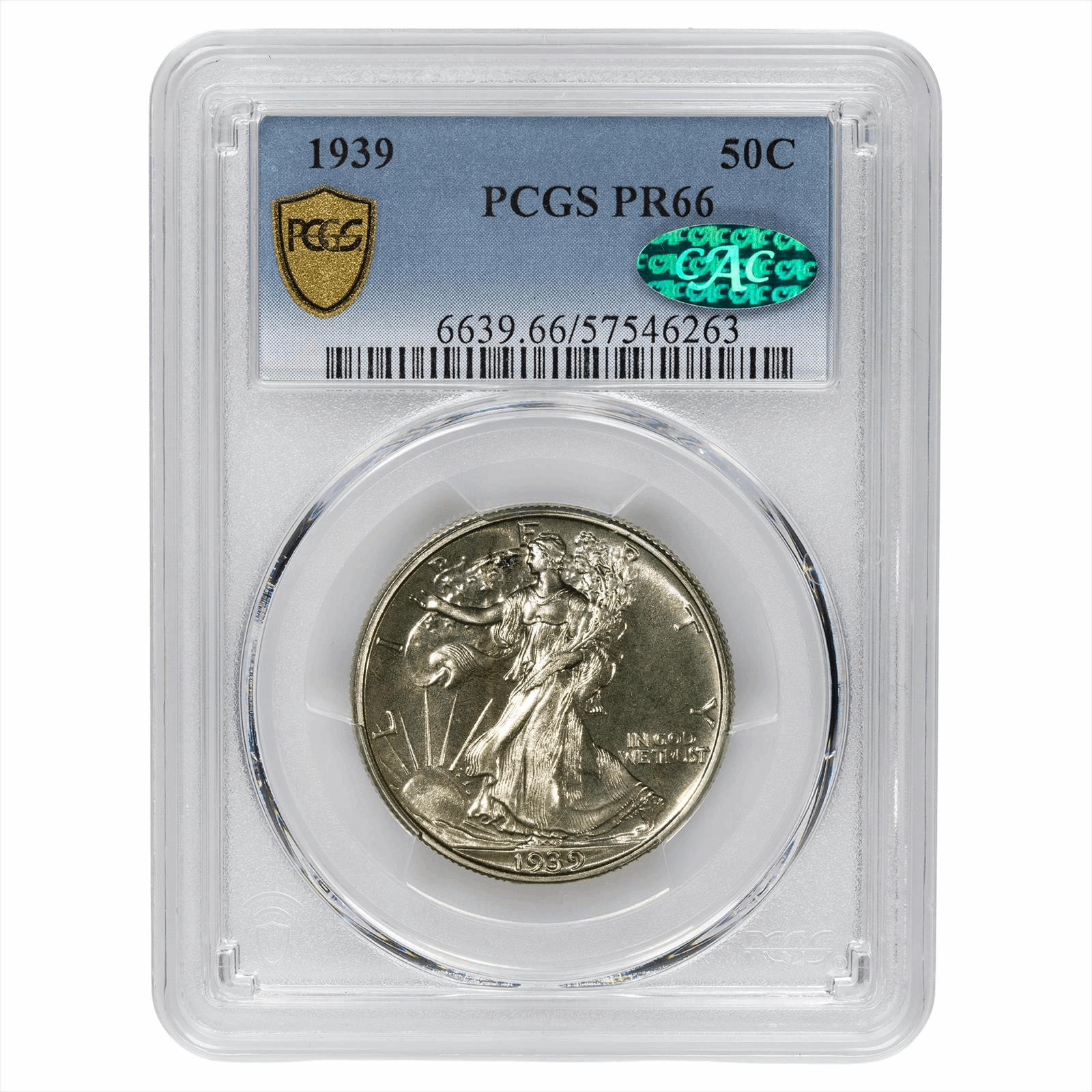 This is a PCGS graded coin. You will receive the coin pictured. You are purchasing a 1939 Walking Liberty Half Dollar graded PCGS PR 66 CAC. This is an excellent coin to add to your collection.