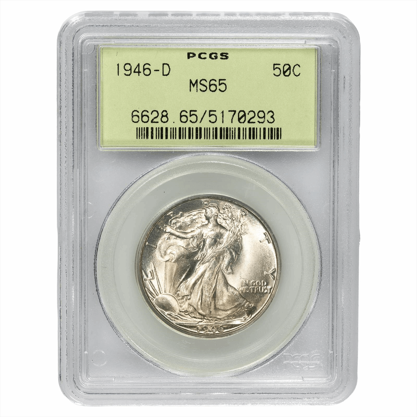 This is a PCGS graded coin. You will receive the coin pictured. You are purchasing a 1946-D Walking Liberty Half Dollar graded PCGS MS 65. This is an excellent coin to add to your collection.
