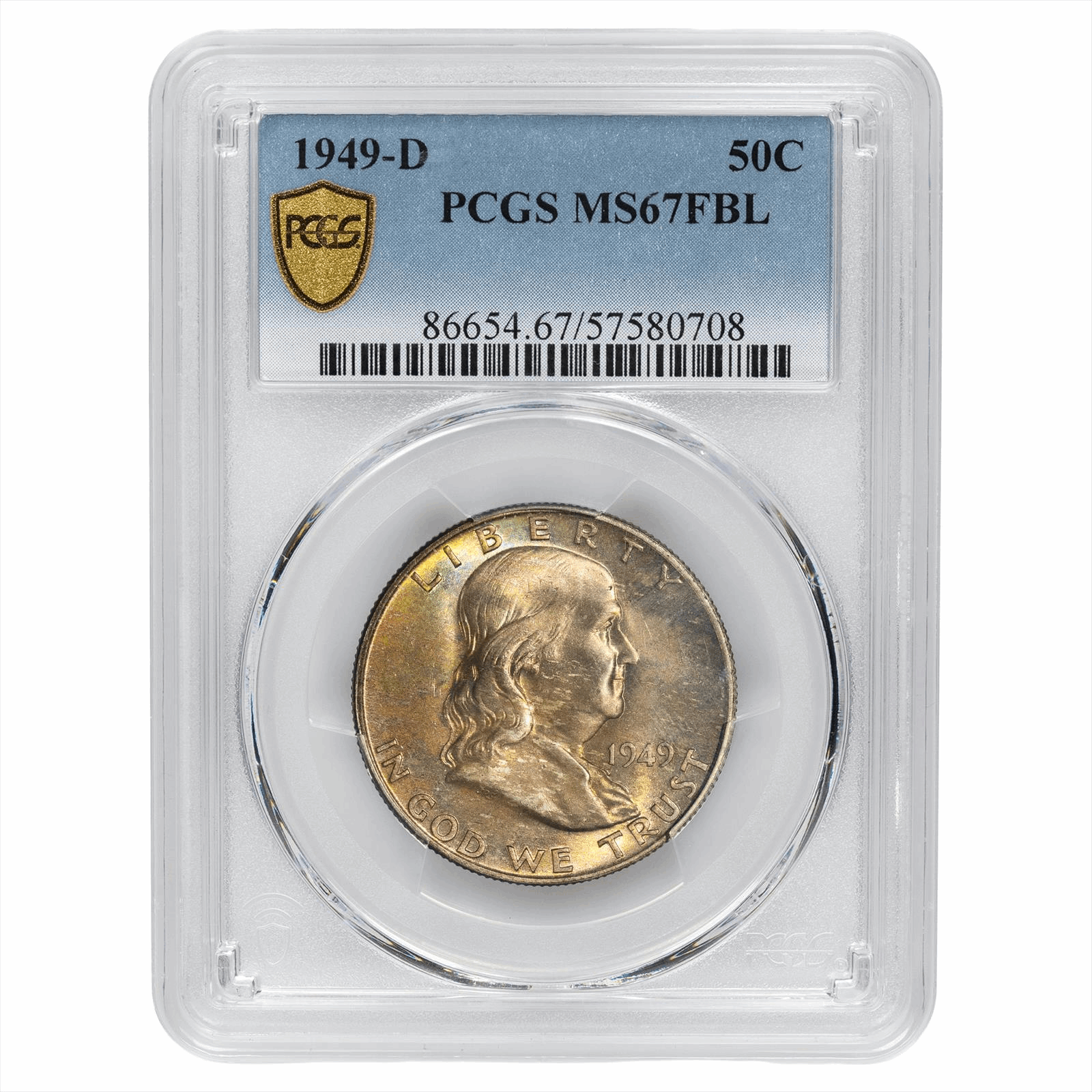 1949-D Franklin Half Dollar 50c, PCGS MS 67 FBL - Conditionally Rare!