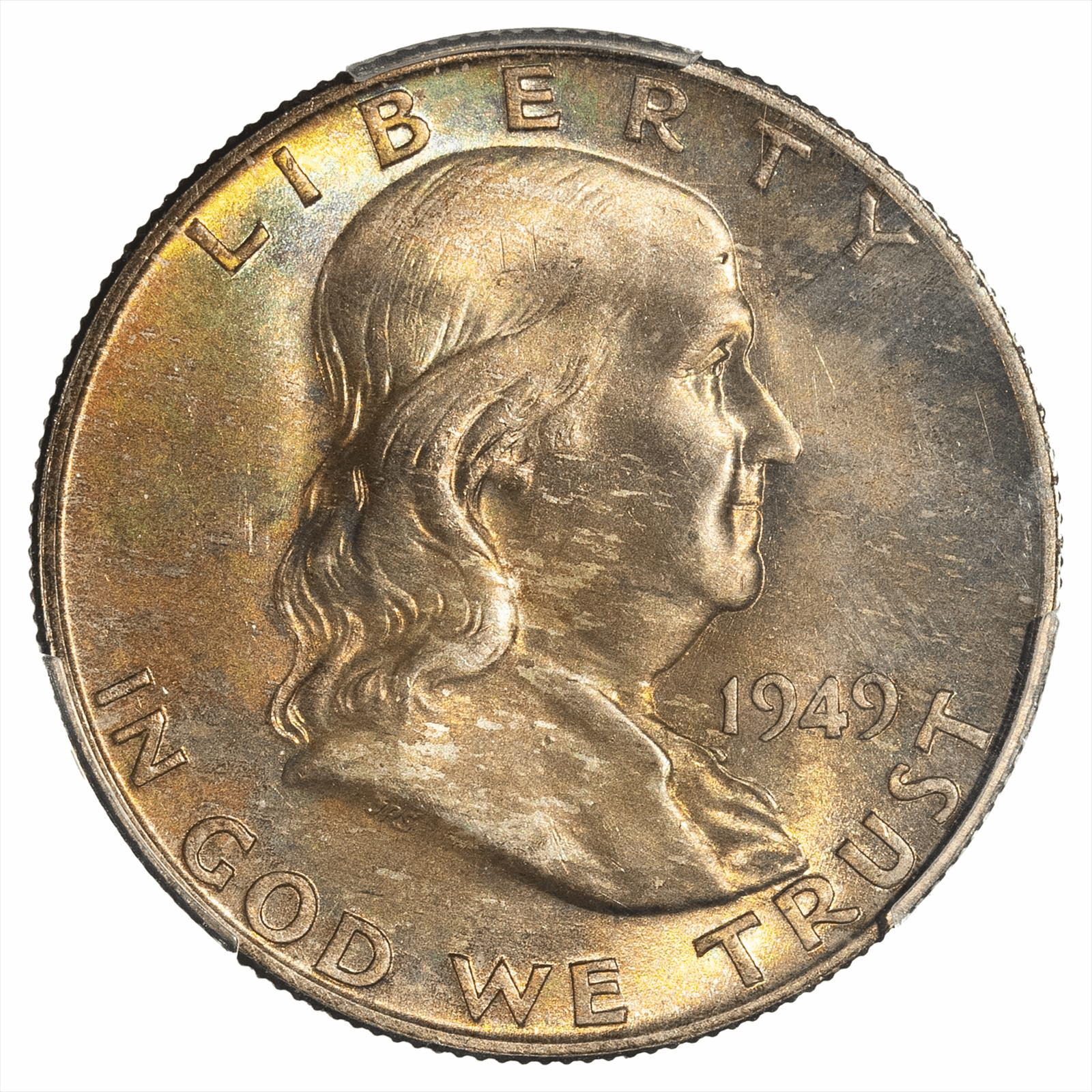 This is a PCGS graded coin and you will receive the pictured coin. You are buying a 1949-D Franklin Half Dollar graded MS67 FBL by PCGS. Original 1949-D Franklin halves in Superb Gem condition with Full Bell Lines and essentially undisturbed surfaces are great numismatic rarities. This exceedingly well-preserved example exhibits frosty, pristine mint luster on both sides and showcase vivid multicolor toning. A high-end Registry coin. The 1949-D Franklin half dollar is plentiful with Full Bell Lines, although most such coins grade no finer than MS65. The issue is elusive in MS66 Full Bell Lines, and the finest pieces known in this strike category are 6!! ( Population: 6 in 67 Full Bell Lines, None finer (9/25)) This is an excellent coin to add to your collection.