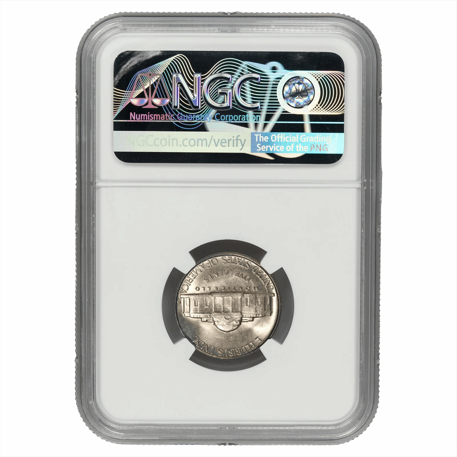 Product Details: 1950 D Jefferson Nickel, MS 66 FS, encapsulated by the Numismatic Guaranty Corporation (NGC), stands out as a remarkable piece for collectors and investors alike. Graded at Mint State 66, this nickel exhibits a stunning level of luster and detail, showcasing the artistry of its intricate design. The obverse features a finely detailed portrait of President Thomas Jefferson, a hallmark of the iconic Jefferson Nickel series. The coin's reverse displays the famous Monticello, Jefferson's estate, rendered with crisp details that highlight its architectural beauty. Certification number 4647094-003 ensures the authenticity and quality that discerning collectors demand. The 'FS' designation (Full Steps) indicates that this coin has retained its sharp design details, particularly in the steps of the Monticello, making it a coveted find for numismatists aiming for completeness in their collections. This nickel, with its historical significance and superior grade, serves as an impressive addition to any collection, offering a tangible connection to mid-20th-century American history. Whether for investment purposes or as a cherished collectible, this 1950 D Jefferson Nickel embodies both beauty and value.