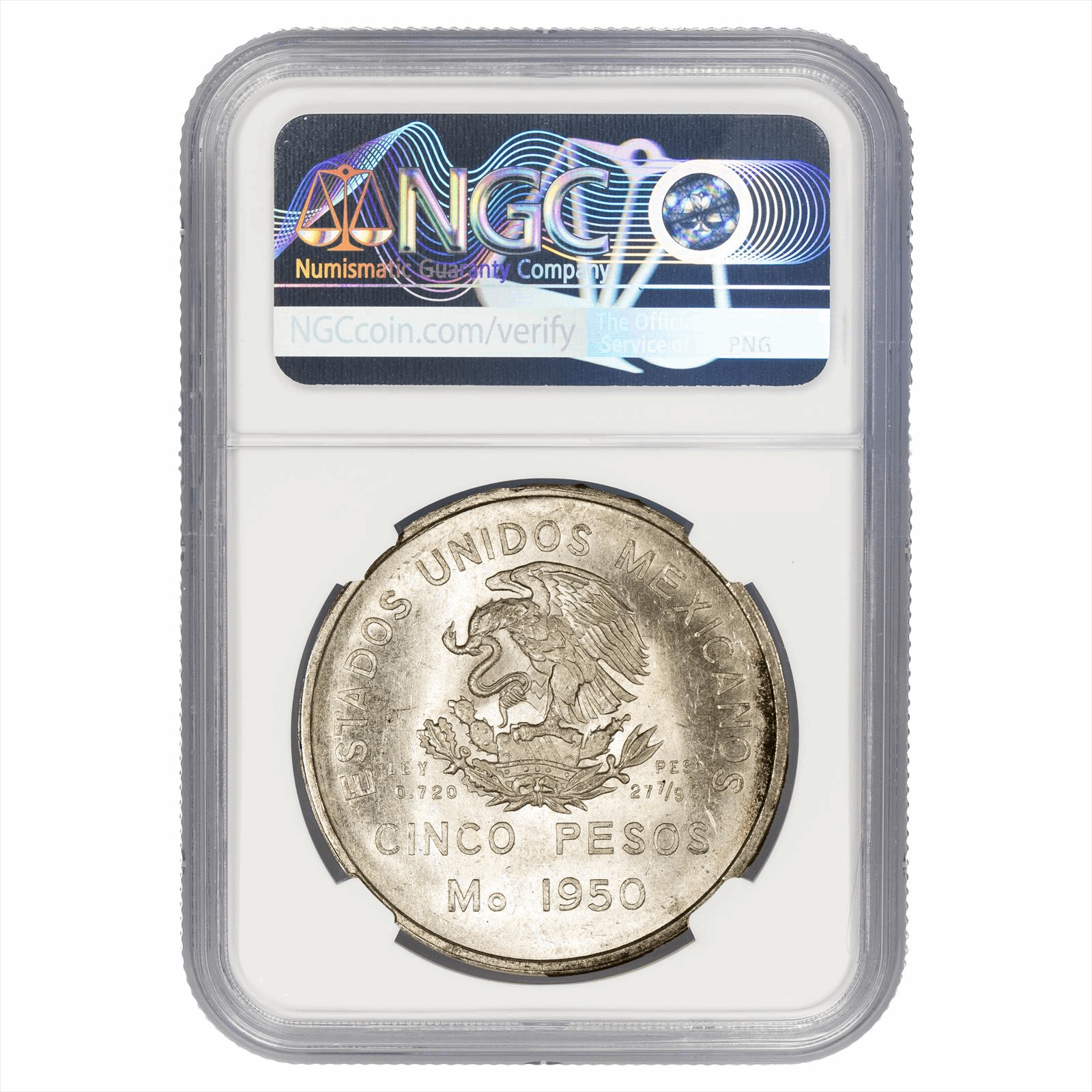 This is an NGC graded coin. You will receive the coin pictured. You are purchasing a 1950MO Mexico 5 Pesos Southeastern Railroad graded NGC MS 64. This is an excellent coin to add to your collection.