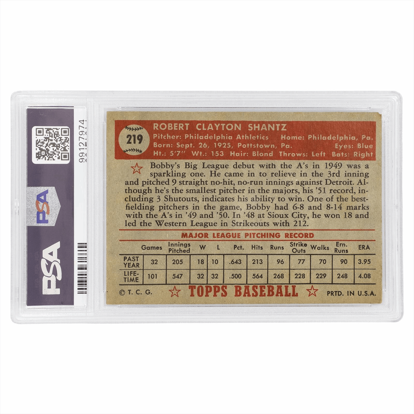 This is a PSA graded card. You will receive the card pictured. You are purchasing a 1952 Topps Bobby Shantz #219 PSA VG-EX 4 AUTO 10 card. This is an excellent card to add to your collection.