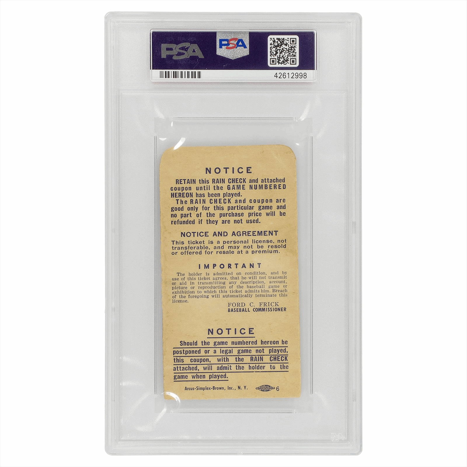 Product Details: This original ticket stub captures a pivotal moment in baseball history when the Brooklyn Dodgers defeated the New York Yankees 7-3 at Ebbets Field to even the series. Authenticated and encapsulated by PSA with a grade of GOOD 2, this vintage collectible remains structurally sound despite its age, showcasing the iconic mid-century typography and design. It serves as a tangible link to a legendary matchup featuring icons like Mickey Mantle and Jackie Robinson during the golden era of the Subway Series. Whether you are a die-hard Dodgers fan or a dedicated collector of 'Boys of Summer' memorabilia, this slabbed artifact is a cornerstone piece for any high-end sports gallery.