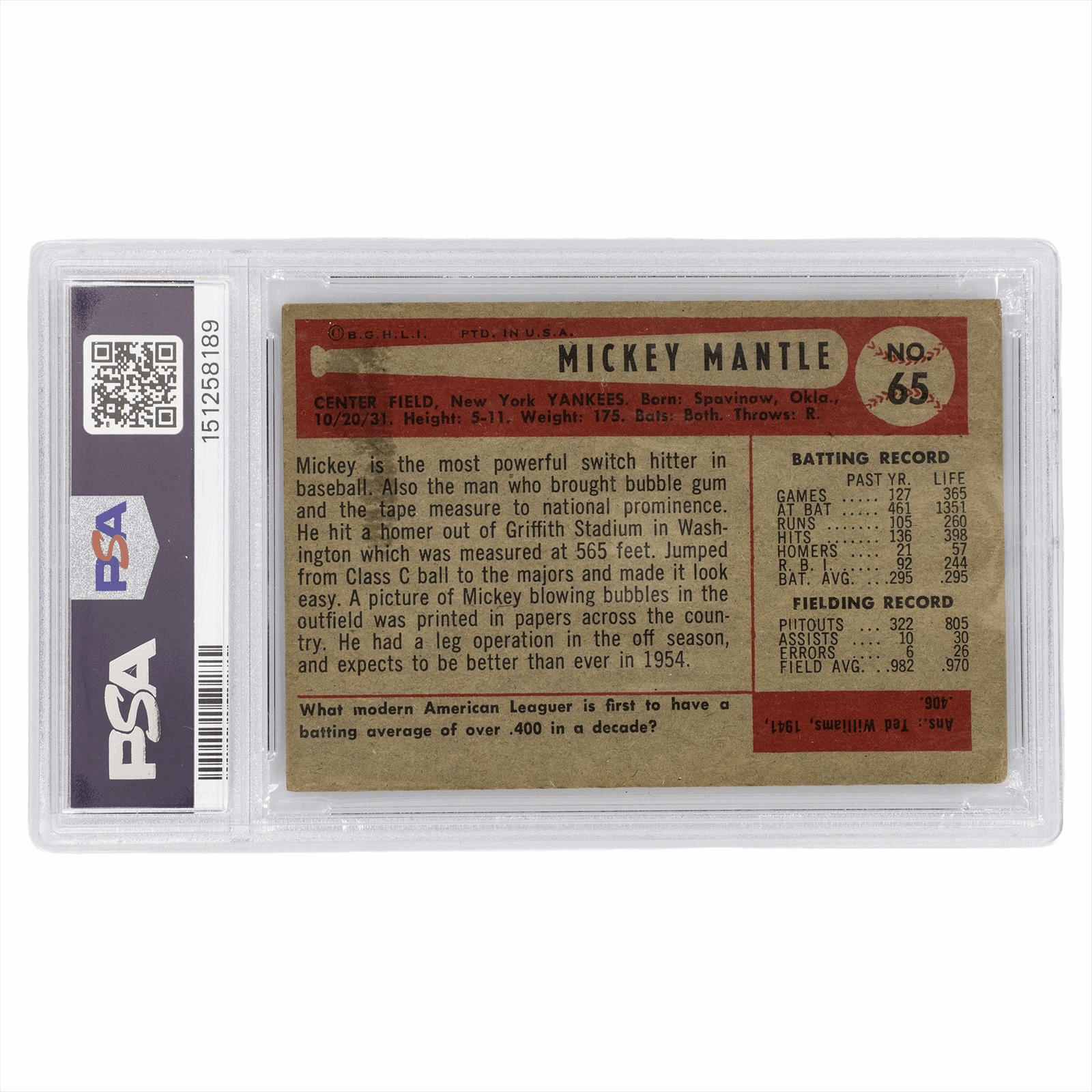 This is a PSA graded card. You will receive the card pictured. You are purchasing a 1954 Bowman Mickey Mantle #65 PSA FR 1.5 card. This is an excellent card to add to your collection.