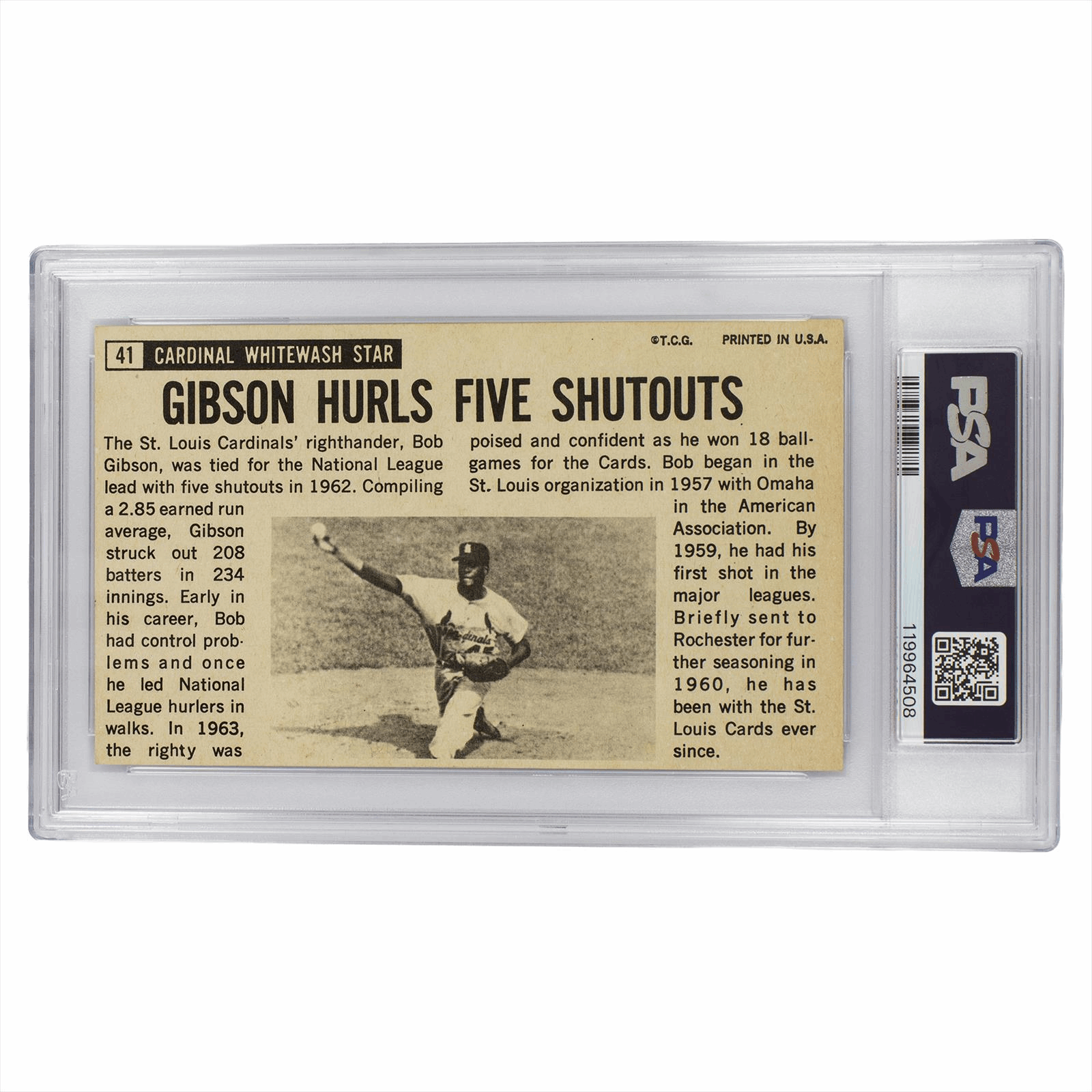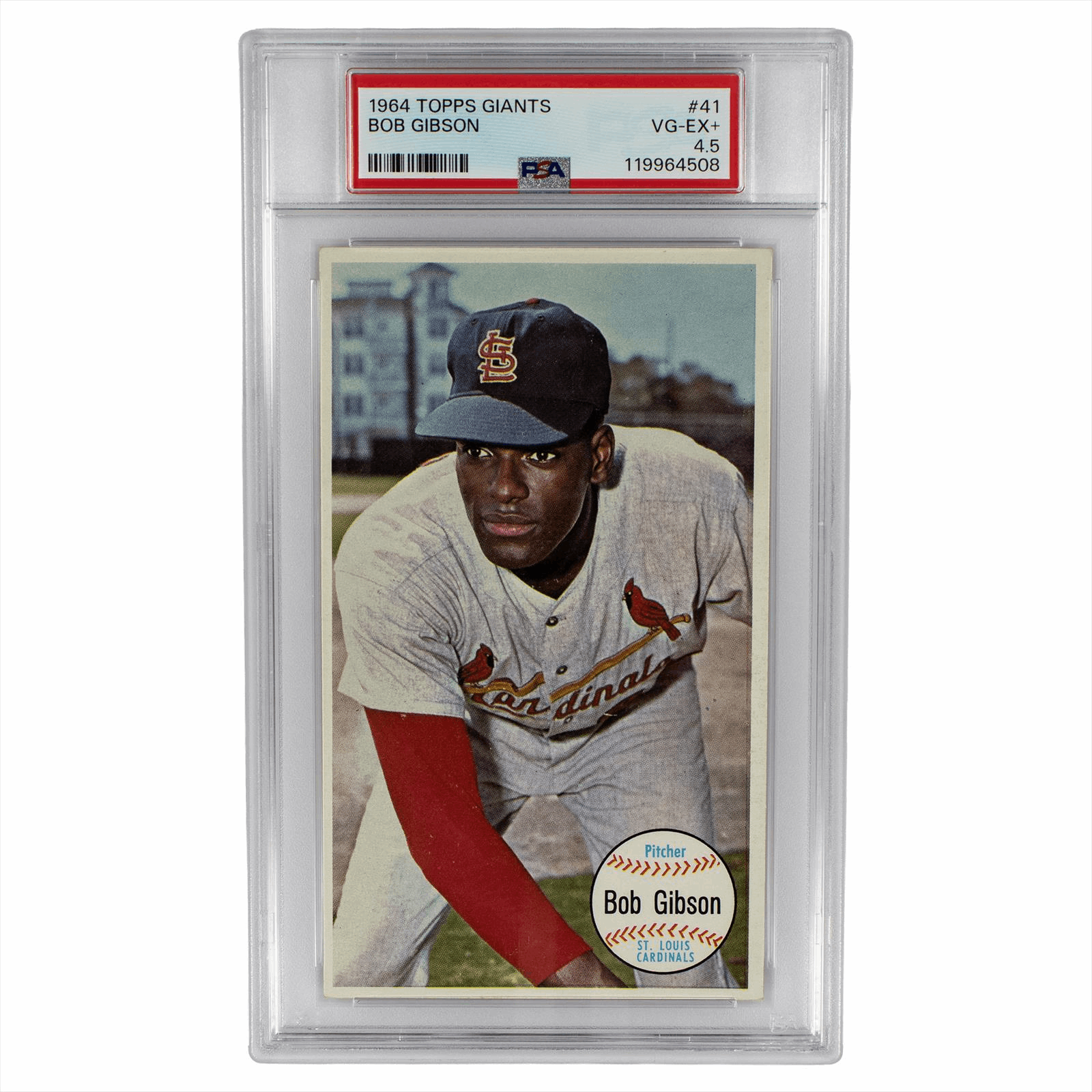 This is a PSA graded card. You will receive the card pictured. You are purchasing a 1964 Topps Giants Bob Gibson #41 PSA VG-EX+ 4.5 card. This is an excellent card to add to your collection.