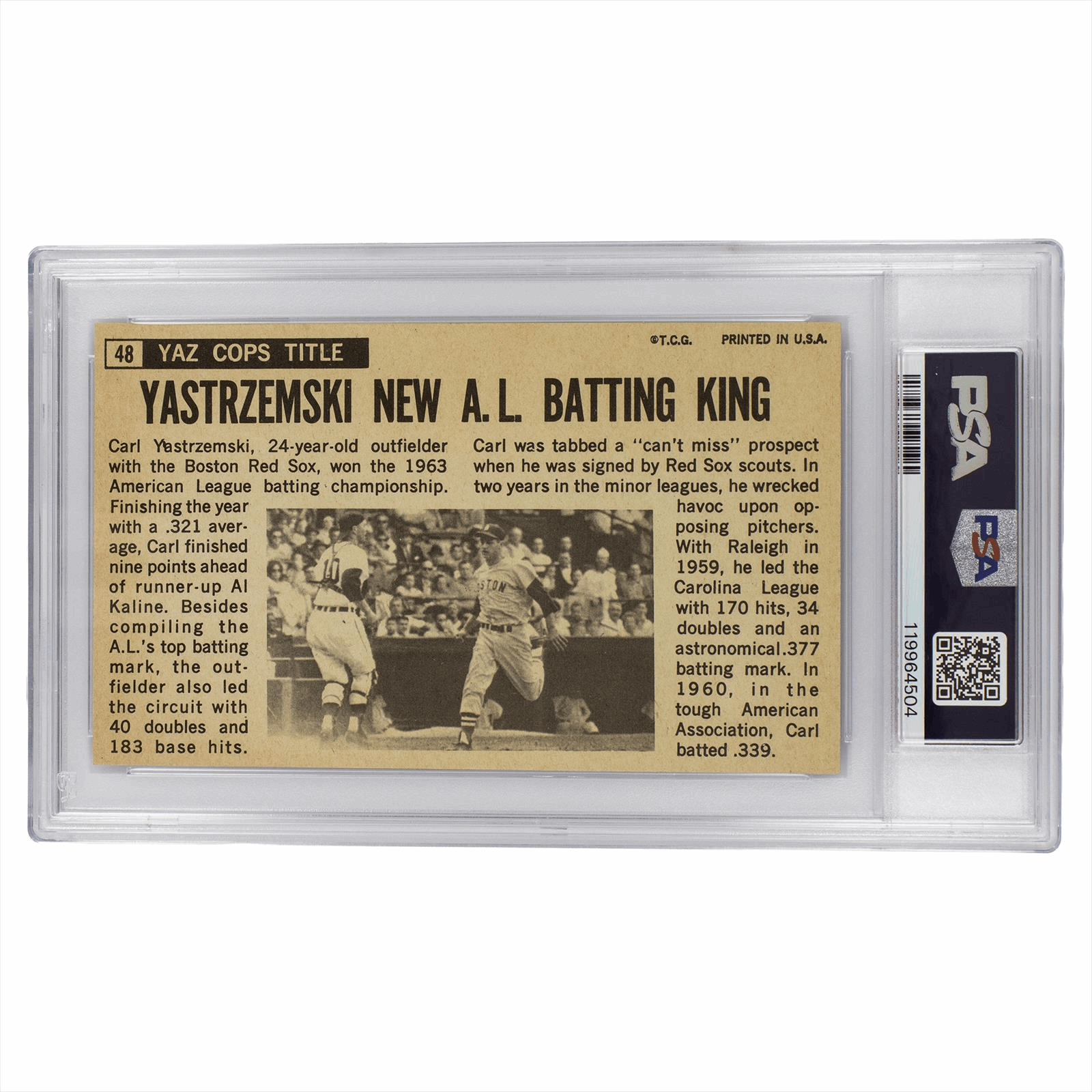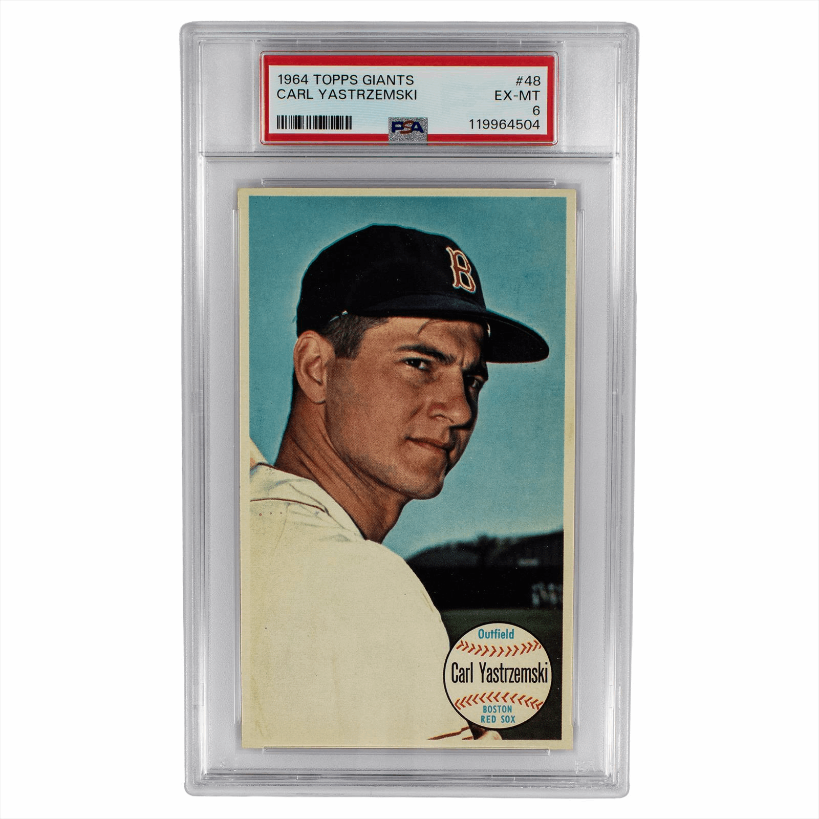 This is a PSA graded card. You will receive the card pictured. You are purchasing a 1964 Topps Giants Carl Yastrzemski #48 PSA EX-MT 6 card. This is an excellent card to add to your collection.
