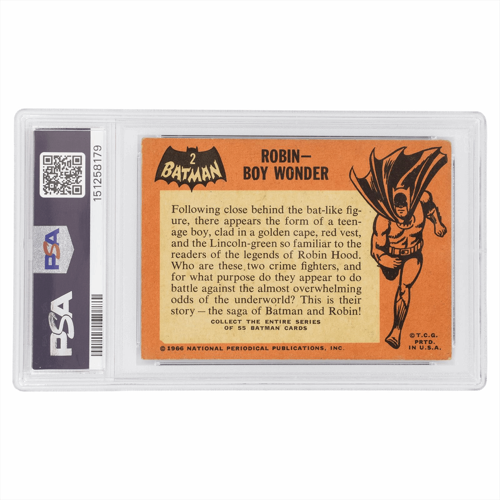 This is a PSA graded card. You will receive the card pictured. You are purchasing a 1966 Topps Batman Robin-Boy Wonder #2 PSA GOOD 2 card. This is an excellent card to add to your collection.