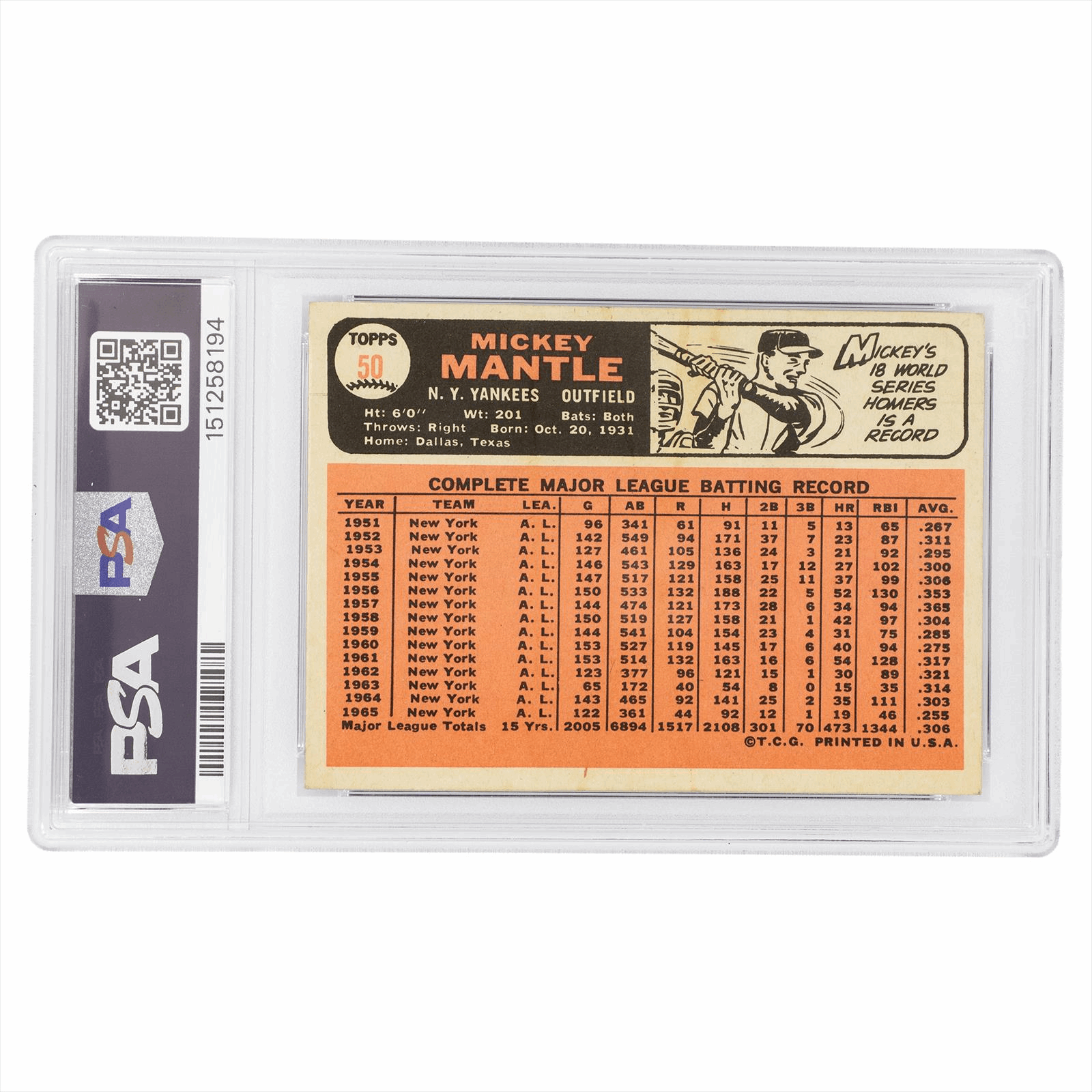 This is a PSA graded card. You will receive the card pictured. You are purchasing a 1966 Topps Mickey Mantle #50 PSA VG-EX 4 card. This is an excellent card to add to your collection.