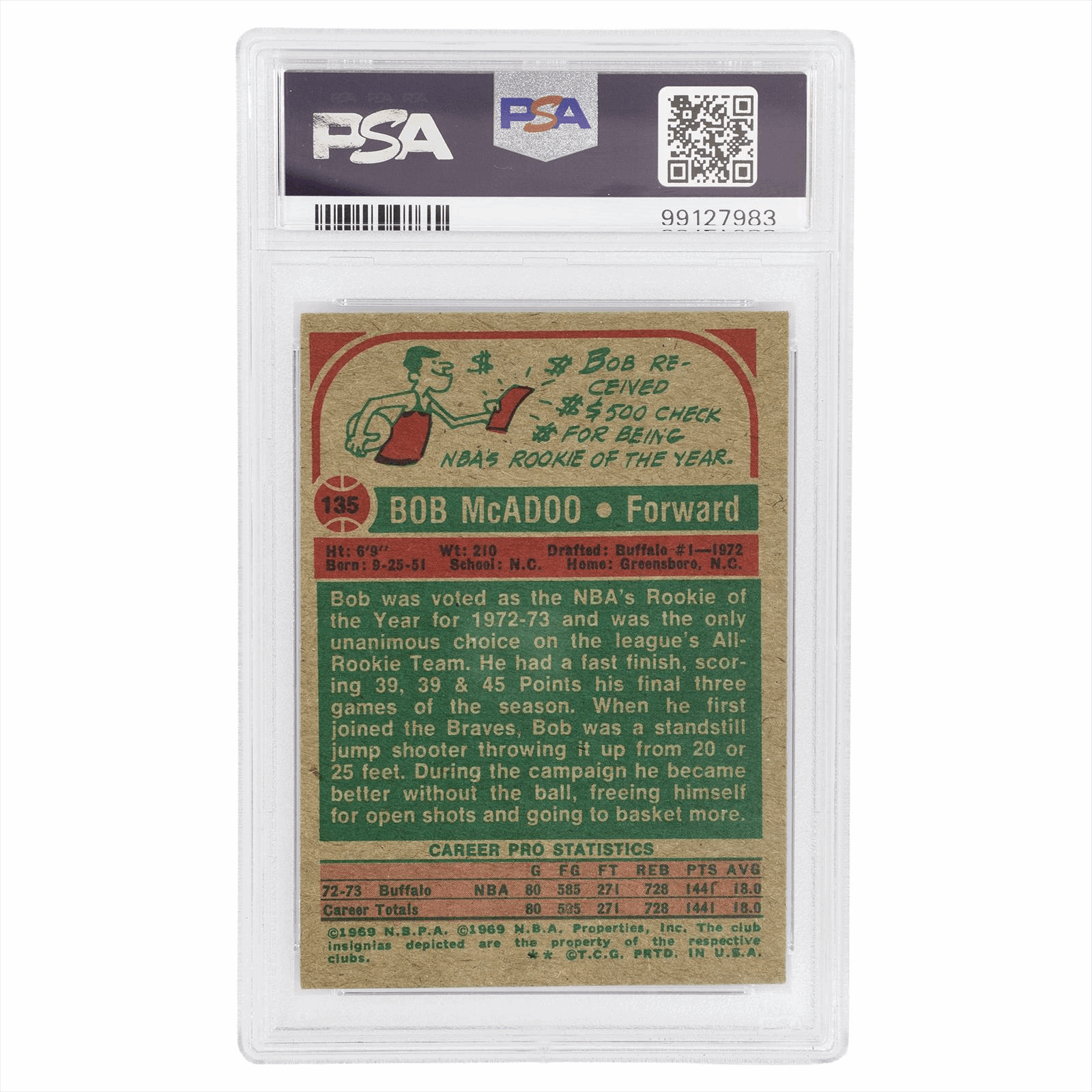 This is a PSA graded card. You will receive the card pictured. You are purchasing a 1973 Topps Bob McAdoo #135 PSA/DNA EX-MT 6 AUTO 10 card. This is an excellent card to add to your collection.