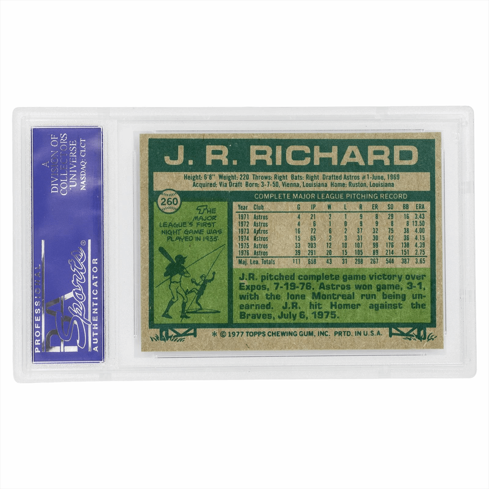 This is a PSA graded card. You will receive the card pictured. You are purchasing a 1977 Topps J.R. Richard #260 PSA GEM MINT 10 card. This is an excellent card to add to your collection.