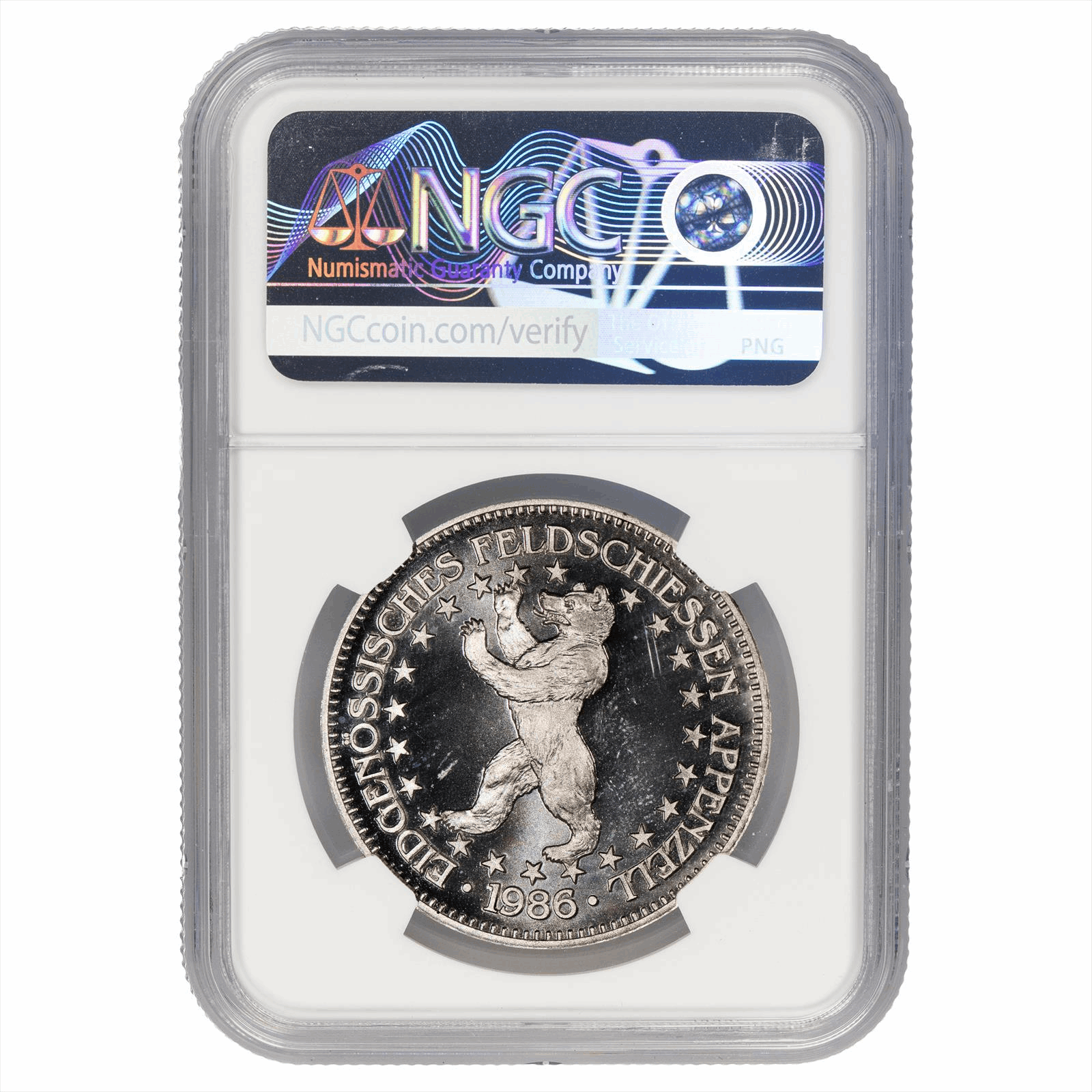 This is an NGC graded coin. You will receive the coin pictured. You are purchasing a 1986M Swiss Shooting Festival 50 Francs graded NGC PF 68 UCAM. This is an excellent coin to add to your collection.