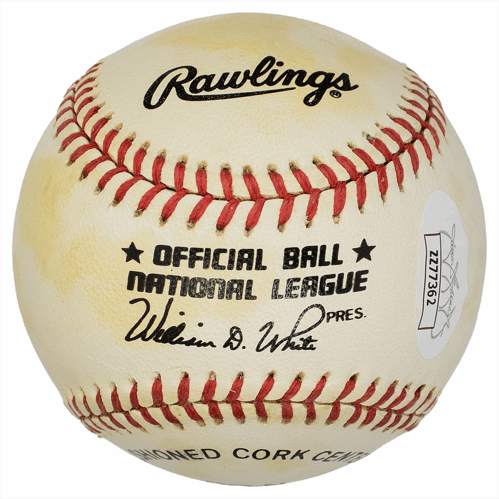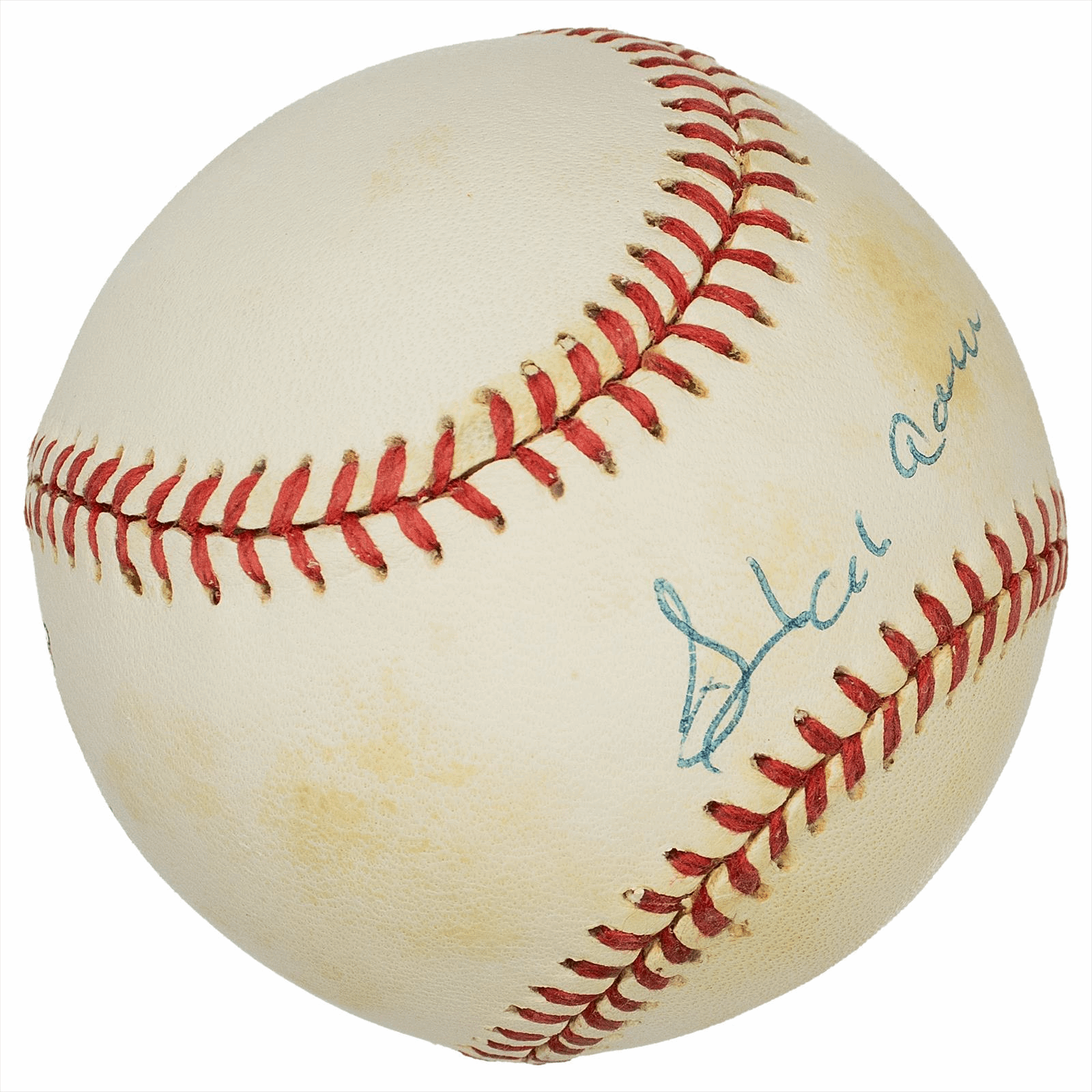 Product Details: This pristine official baseball features the timeless signature of the 'Home Run King,' Hank Aaron, hand-signed during the 1992-93 period of his legendary post-career legacy. The autograph is penned in crisp ink, serving as a high-grade tribute to the man who broke Babe Ruth's record and remains one of the most respected figures in baseball history. Your investment is fully protected by a comprehensive JSA (James Spence Authentication) Letter of Authenticity (LoA), which provides industry-leading verification for this specific signature. This premium collector's item offers a tangible connection to 'Hammerin' Hank,' making it an essential cornerstone for any elite sports memorabilia gallery or Braves fan.