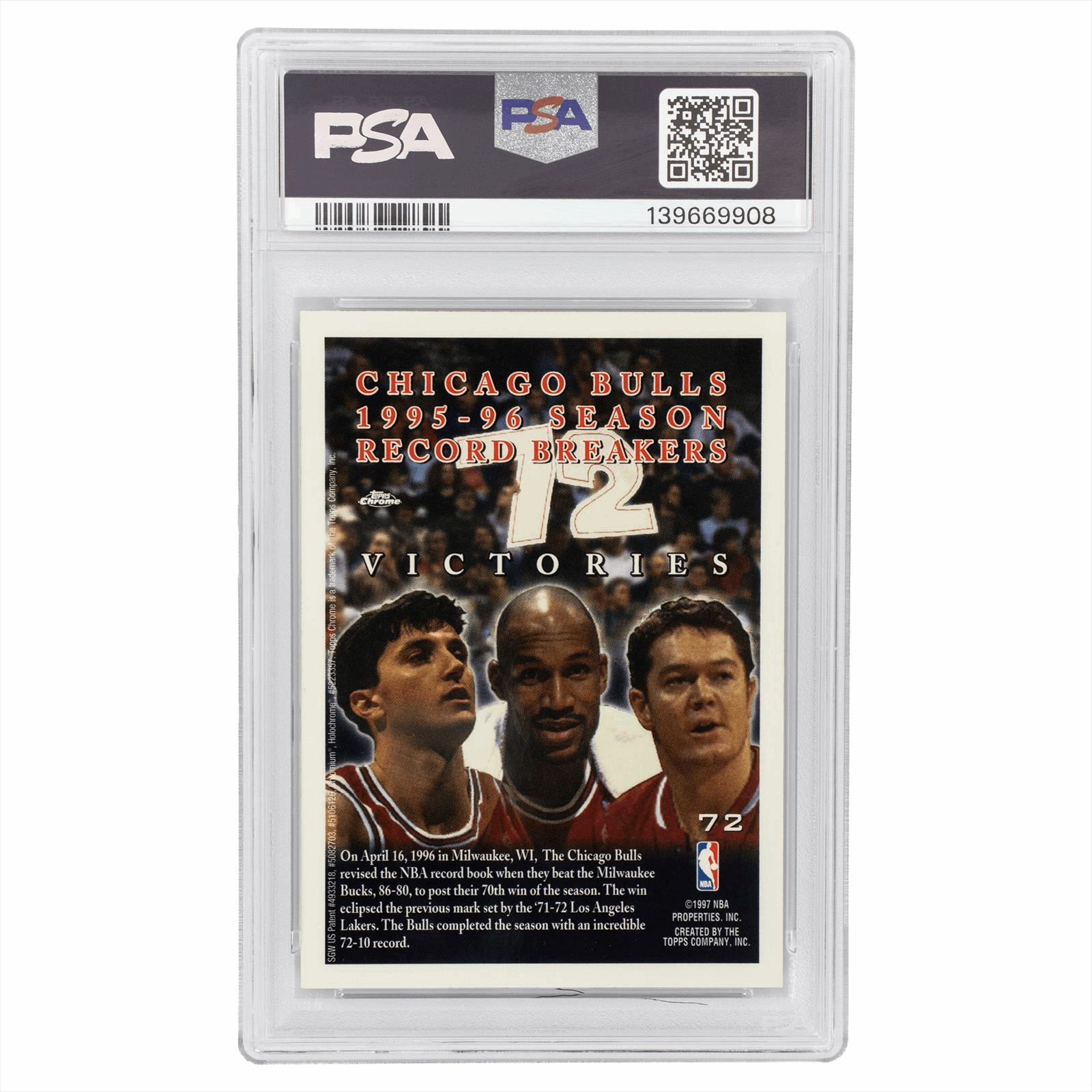 1996 Topps Chrome Chicago Bulls 72 Wins #72 PSA MINT 9