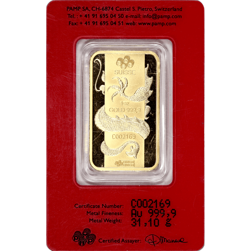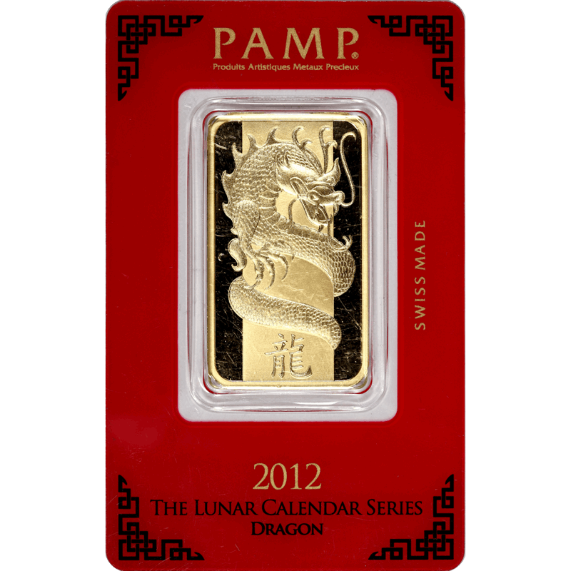 1oz .999 Gold PAMP 2012 Lunar Year of the Dragon Bar