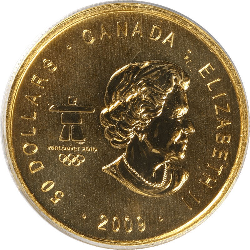 The Canadian Maple Leaf 1 oz gold coin is has a face value of $50. Pure .9999 fine Canadian Maple Leaf gold coins are known and respected throughout the world because of the impeccable standards of quality mandated by the Royal Canadian Mint. Each gold Maple Leaf coin features the image of Queen Elizabeth the second, along with the denomination and date of issue, on the obverse side...and an image of Canada's national symbol, the maple leaf (from which the coin derives its name), on the reverse side, along with the name of the country and the level of purity of the gold, listed in both English and French.