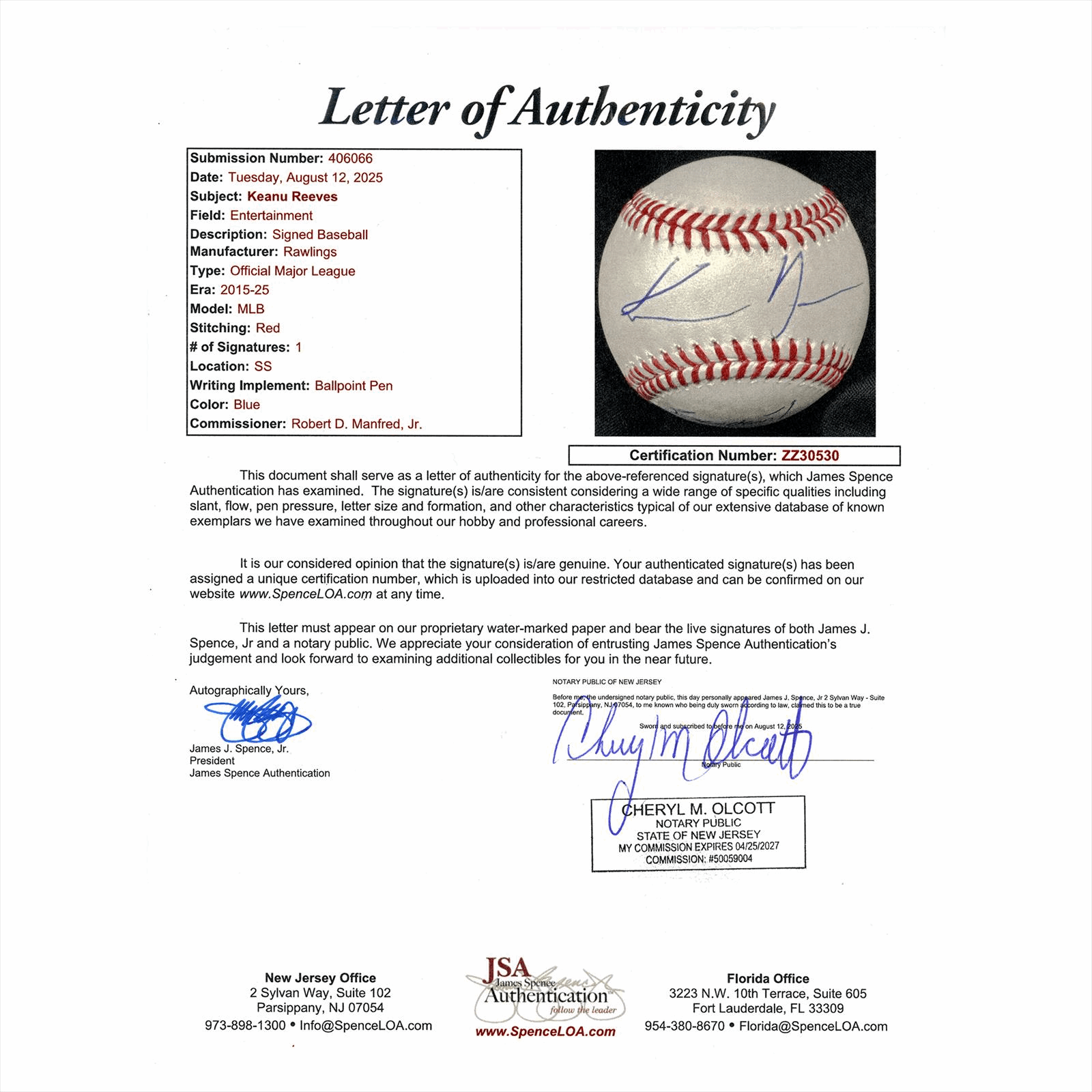 This is a JSA graded card. You will receive the Ball pictured. You are purchasing a Keanu Reeves 'Excellent!' Inscribed Signed Baseball JSA Certified. This is an excellent addition to your collection.