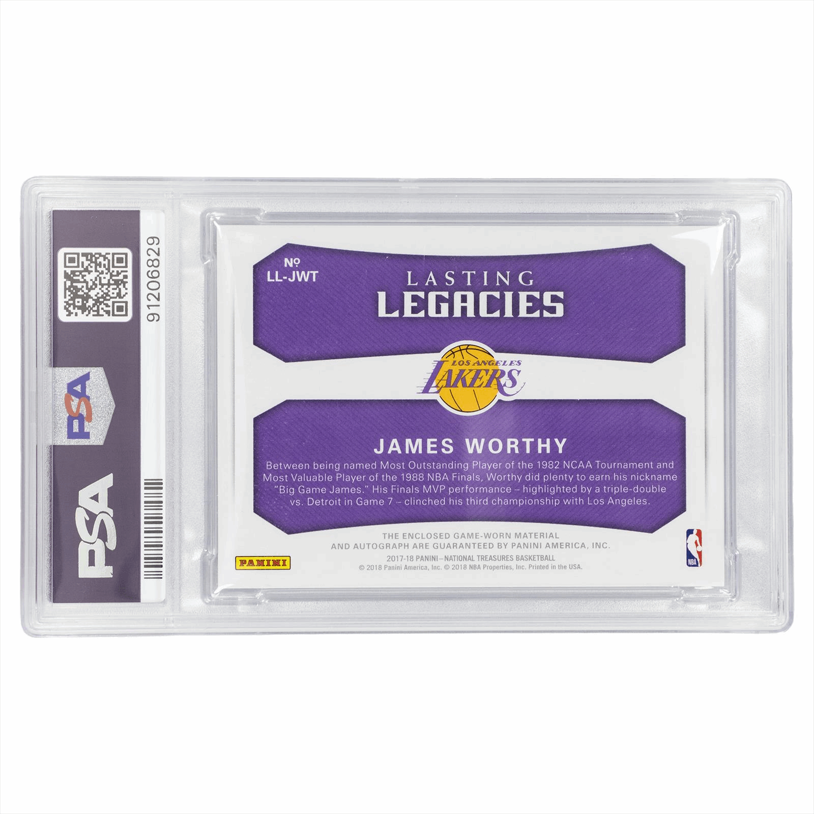 2017 Panini Nat. Treasure James Worthy Lstng Leg. Jersey Auto #JWT PSA MINT 9 AUTO 10
