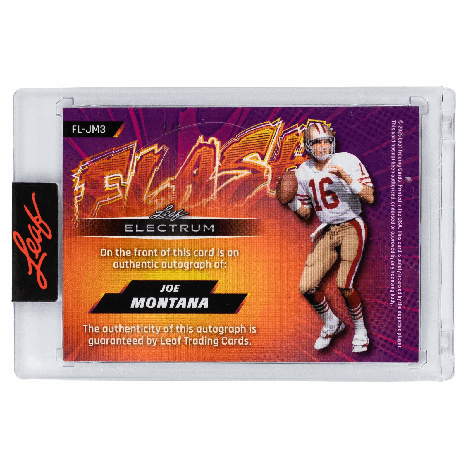 This is an ungraded card. You will receive the card pictured. You are purchasing a 2025 Leaf Electrum Copper Joe Montana 1/1 AUTO card. This is an excellent card to add to your collection.